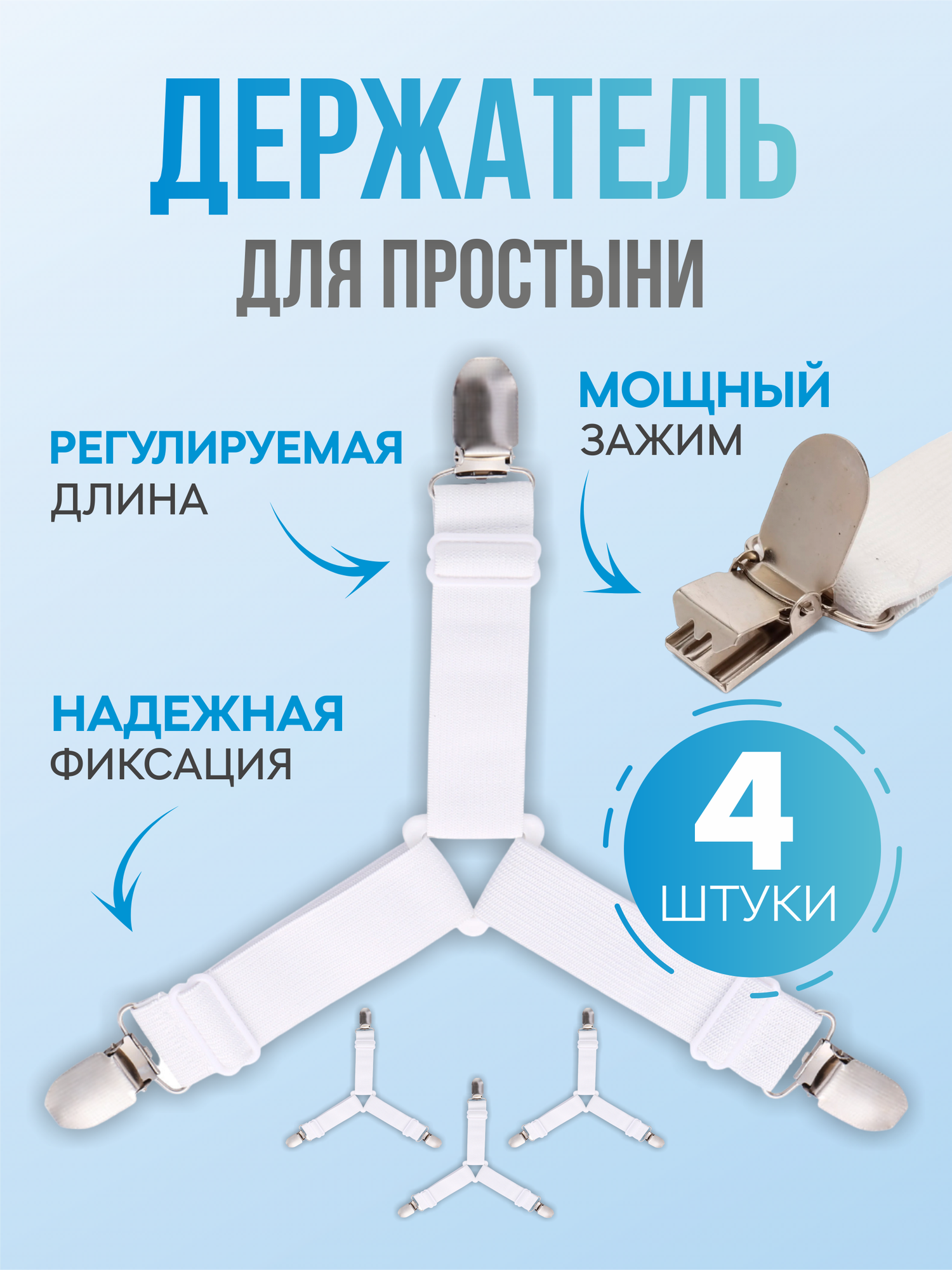 Отзывы на Держатели для простыни, резинки для простыни с зажимами фиксаторами на матрас. 4 шт.
