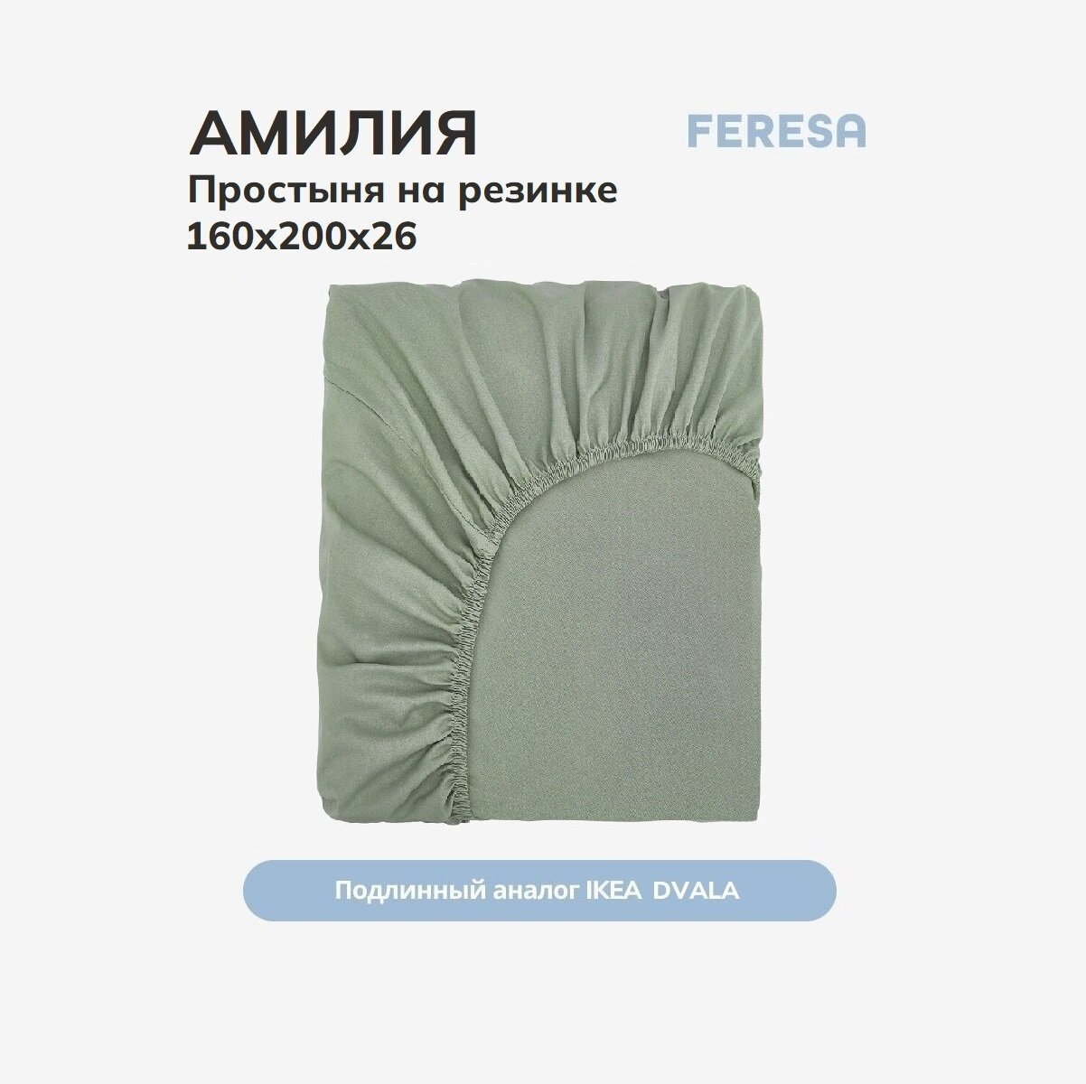 Простынь на резинке 160х200 см, поплин, серо-зеленый, Feresa Hygge амилия/DVALA, аналог икеа 1 645 ₽