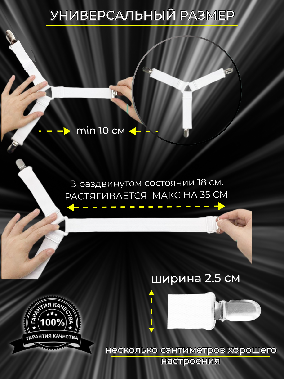 держатели для простыни с фиксаторами на 3 зажима и резинками на матрас информация: