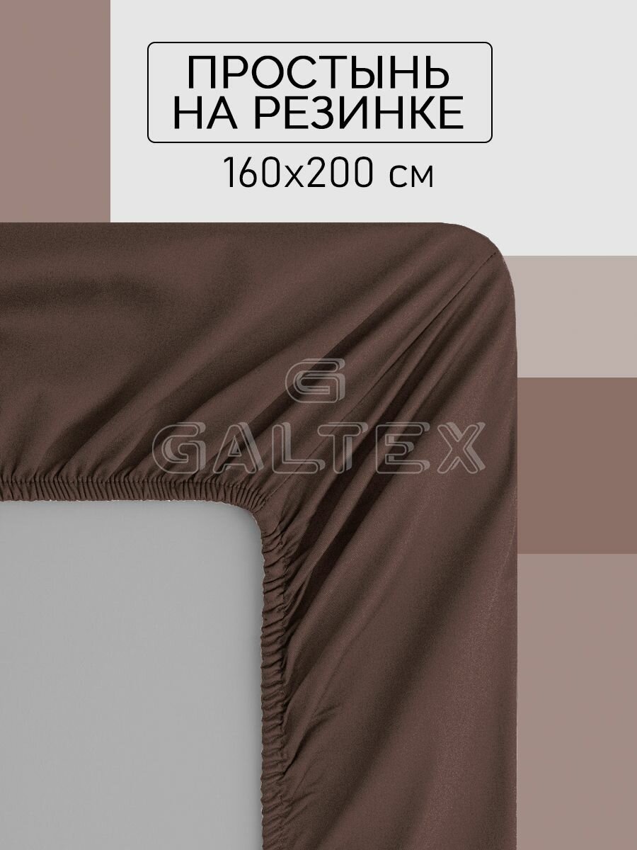 Простыня на резинке 160х200х20 Хлопок, Поплин GALTEX шоколад информация: