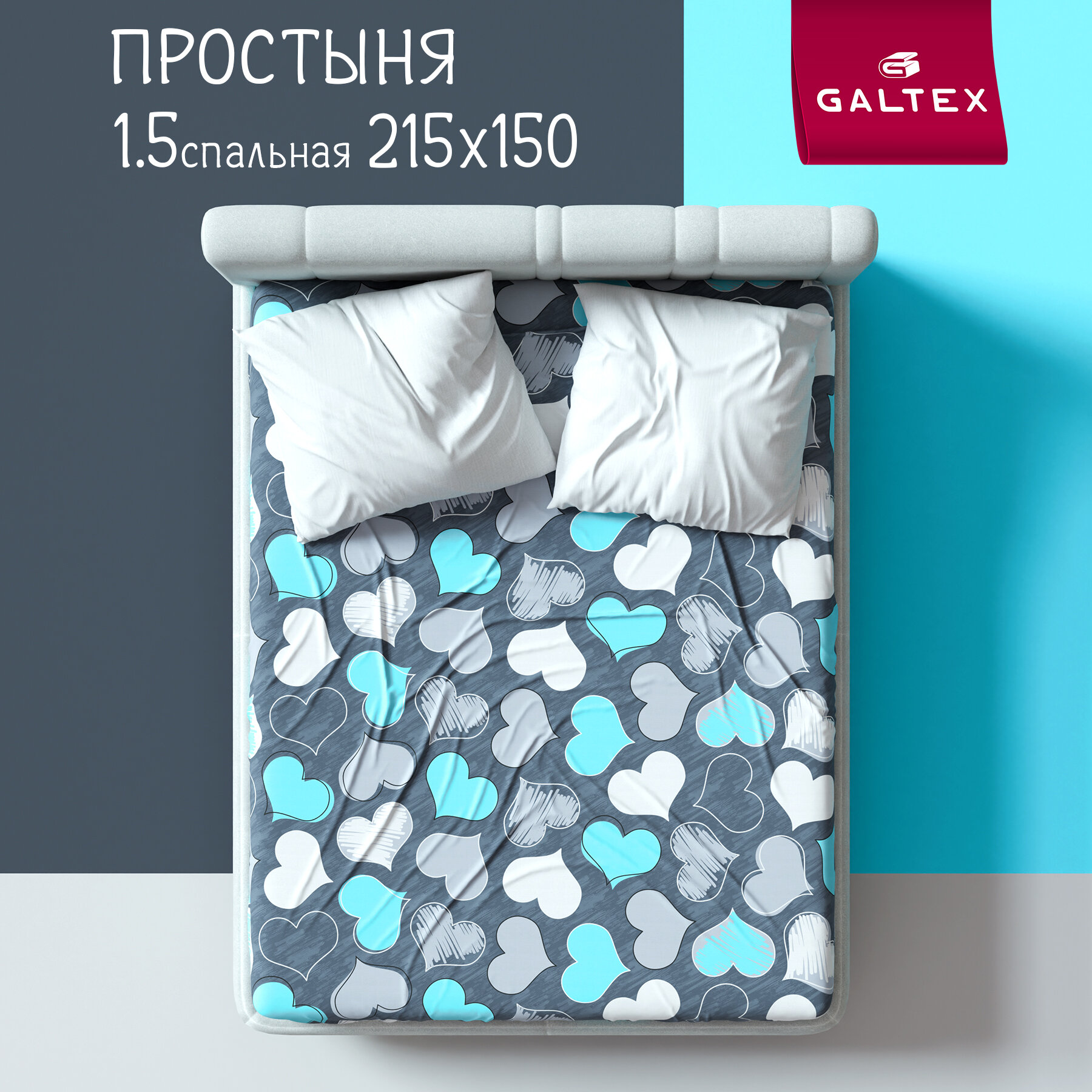 Простыня 1,5-спальная 150х215 Galtex Нежность поплин Романтика бирюзовый информация: