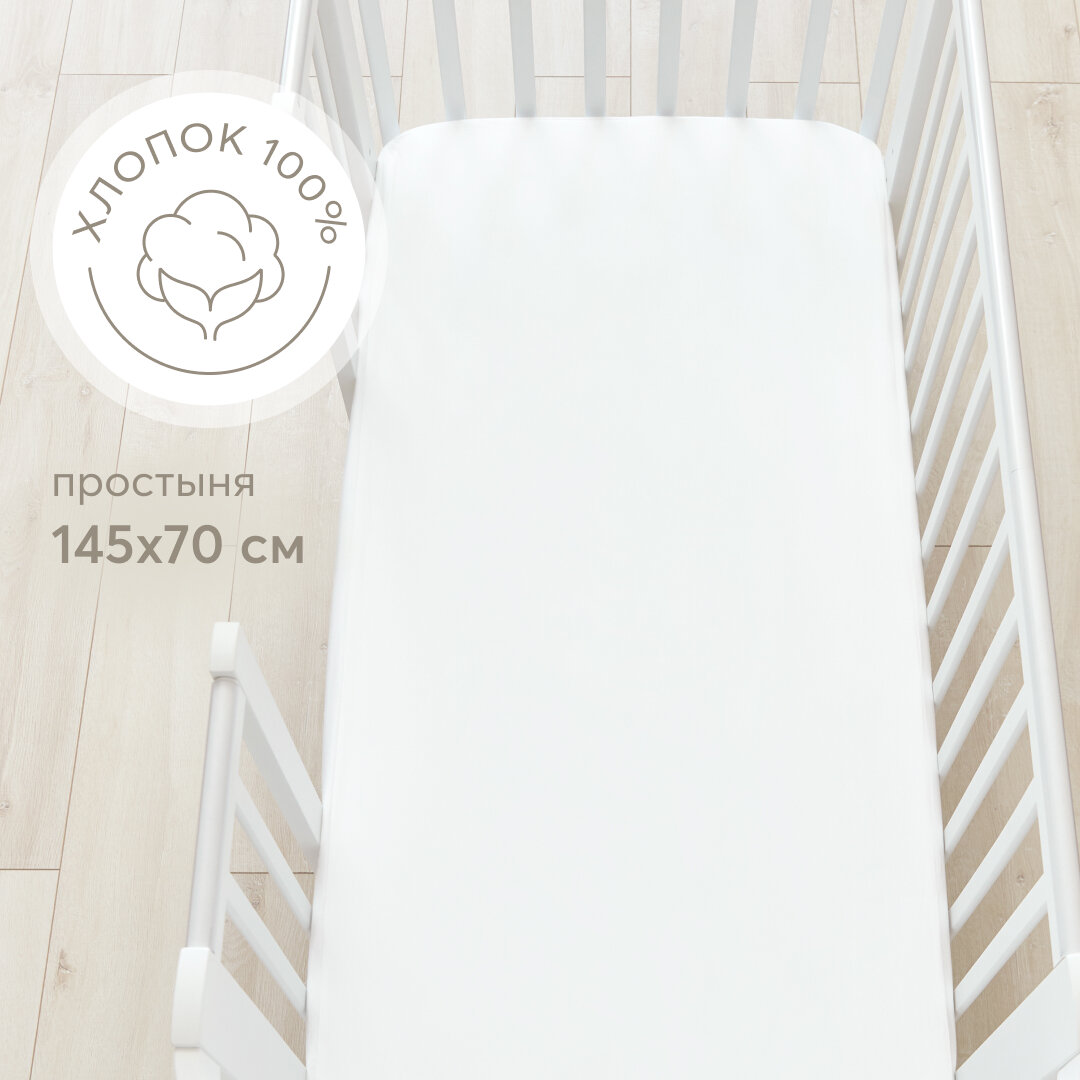 Отзывы на 87541, Простыня на резинке Happy Baby, постельное белье детское, простынь на резинке в кроватку, сатиновая, размер 145х70, белая