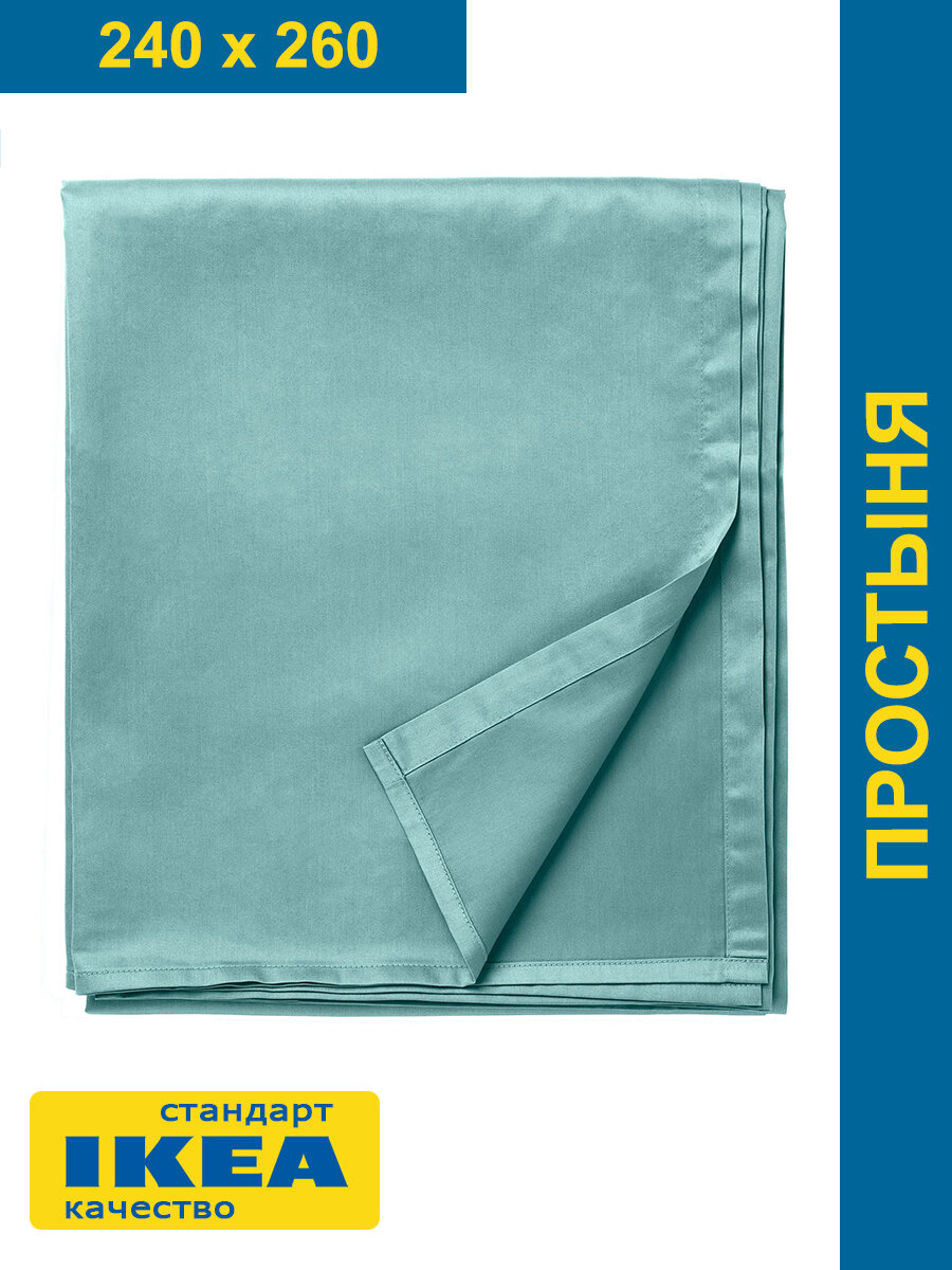 Простыня 240x260 натесмио (икеа NATTJASMIN) серо-бирюзовый сатин, лиоцелл KL-50102014 информация: