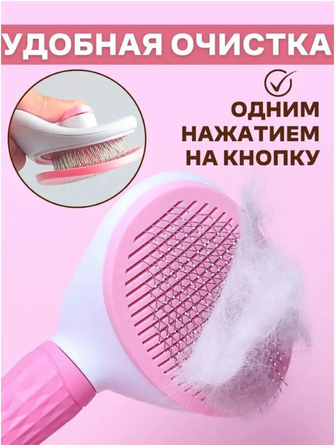 Щетка для вычесывания животных, расческа для шерсти, дешеддер, пуходерка для кошек, собак розовая информация: