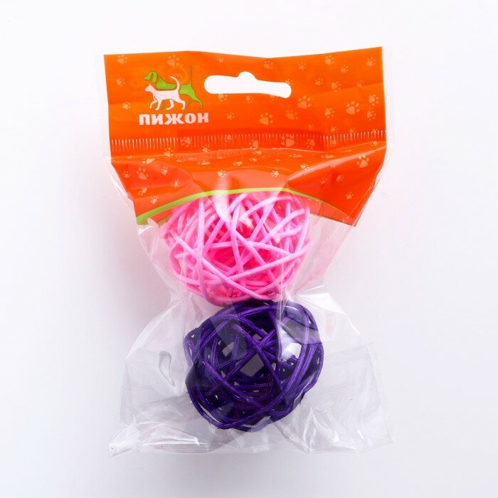 10 цен на Набор из 2 плетёных шариков из лозы без бубенчиков, 5 см, фиолетовый/розовый