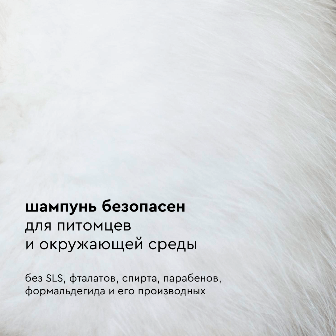 | Способ применения | Нанесите небольшое количество шампуня на влажные руки, вспеньте, очистите образовавшейся пеной шерсть и кожу питомца, смоченные водой. После тщательно смойте пену теплой водой. |