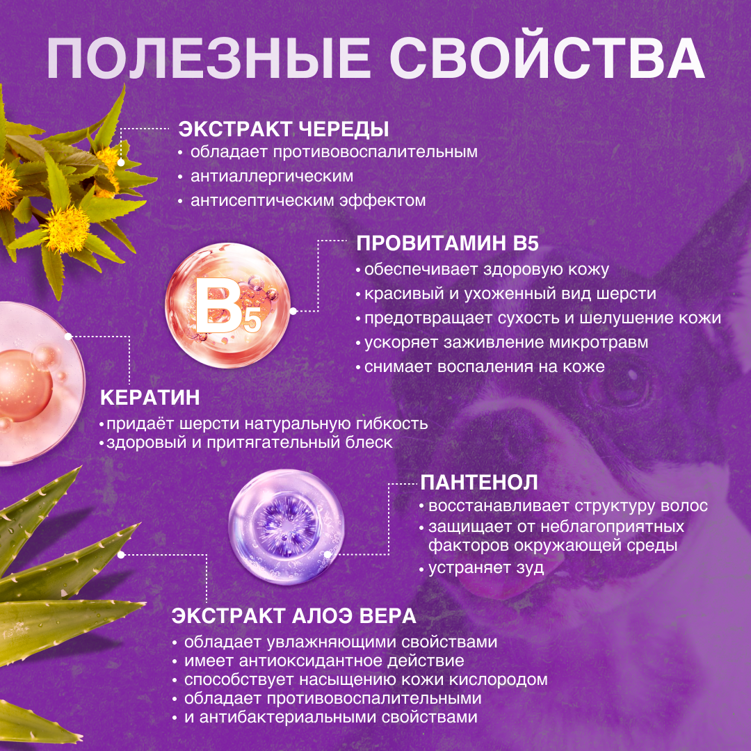 | Назначение | от запаха / уход за кожей / уход за лапами / уход за шерстью |