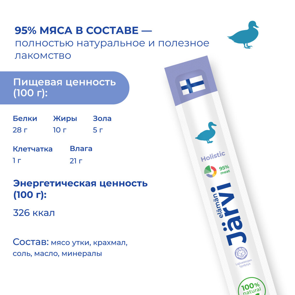 Jarvi мясные колбаски для щенков и собак с уткой 5 упаковки по 1 шт. информация: