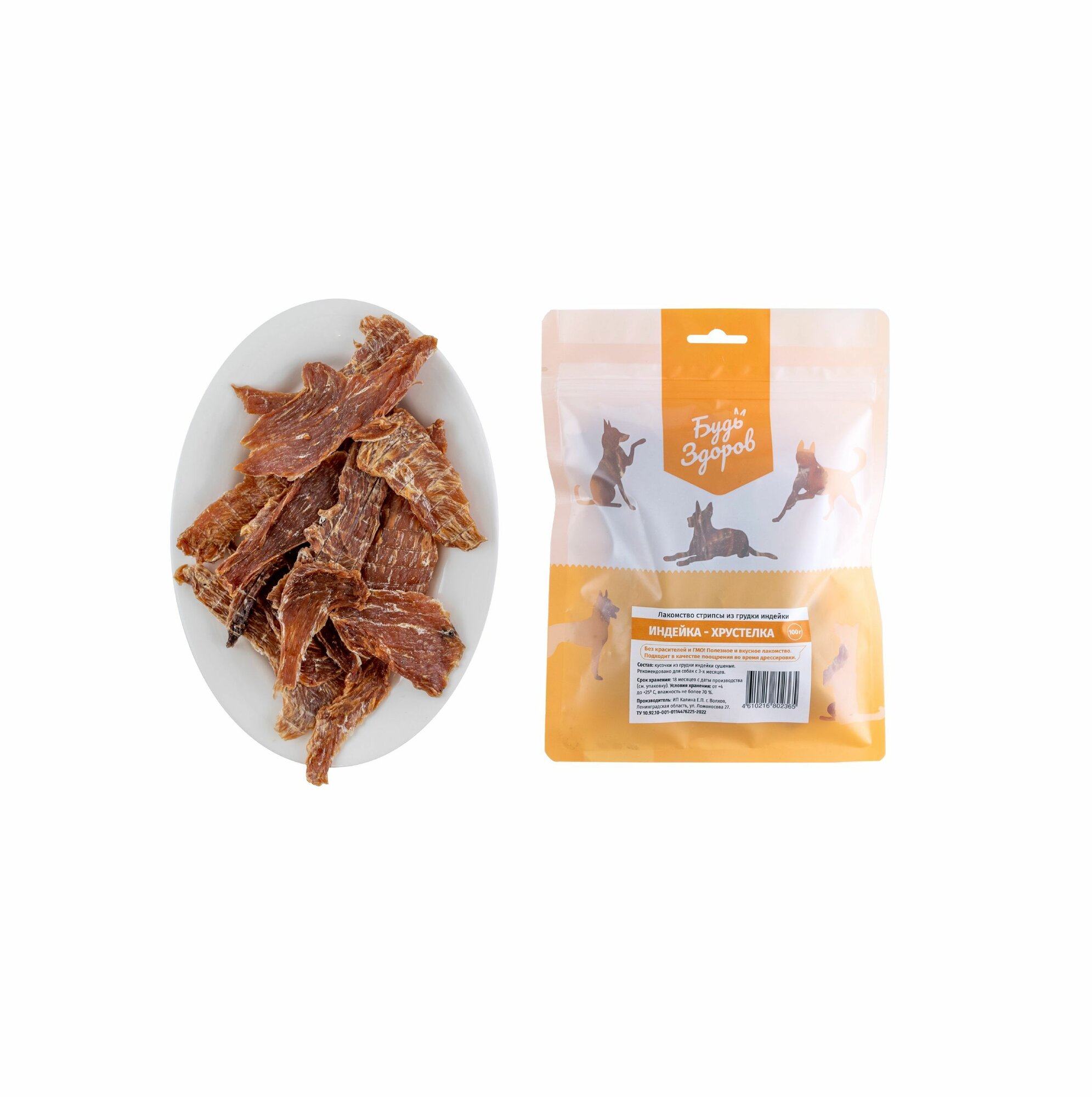 Будь Здоров. Лакомство стрипсы из индейки информация: