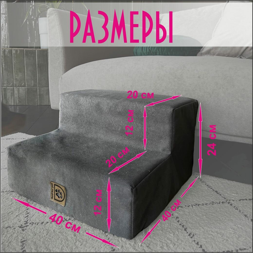 10 цен на Лестница для животных/Ступени для собак/Лесенка для собак STEP 2S, серая, 40х40х24, высота 24 см.