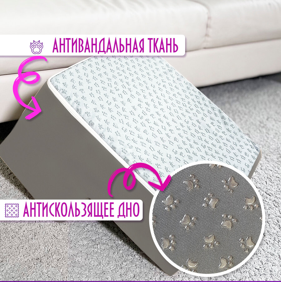 Лестница для животных/Ступени для собак/Лесенка для собак STEP 2S, серая, 40х40х24, высота 24 см. информация:
