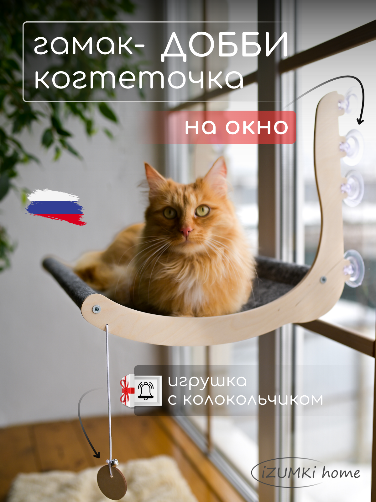 Подвесной гамак для кошек на окно Добби с когтеточкой информация:
