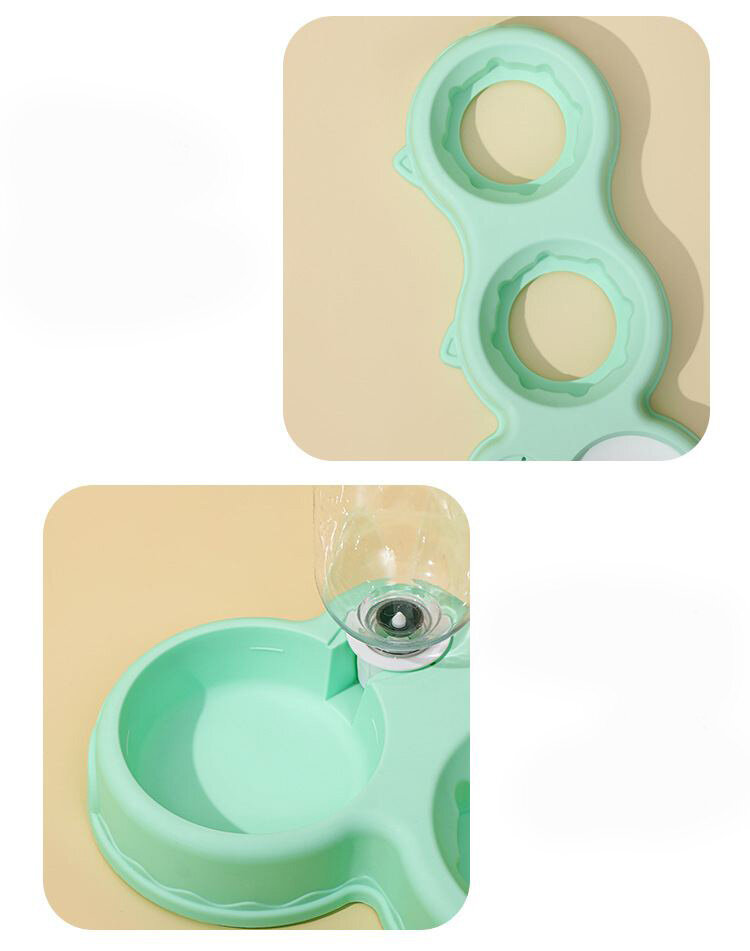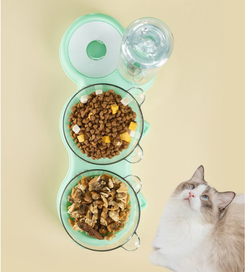 Отзывы на Миска для кошек и собак тройная с двумя чашками и поилкой с диспенсером для воды мятная