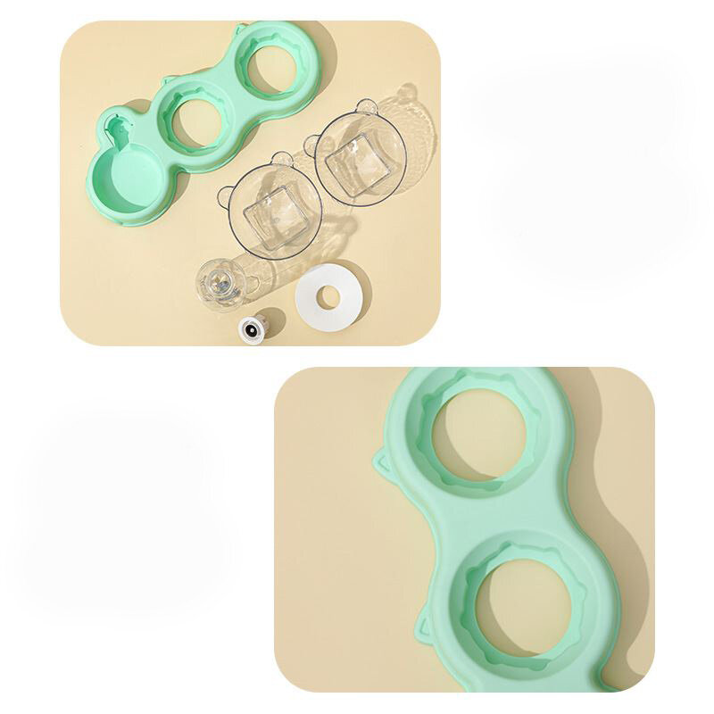 Миска для кошек и собак тройная с двумя чашками и поилкой с диспенсером для воды мятная информация: