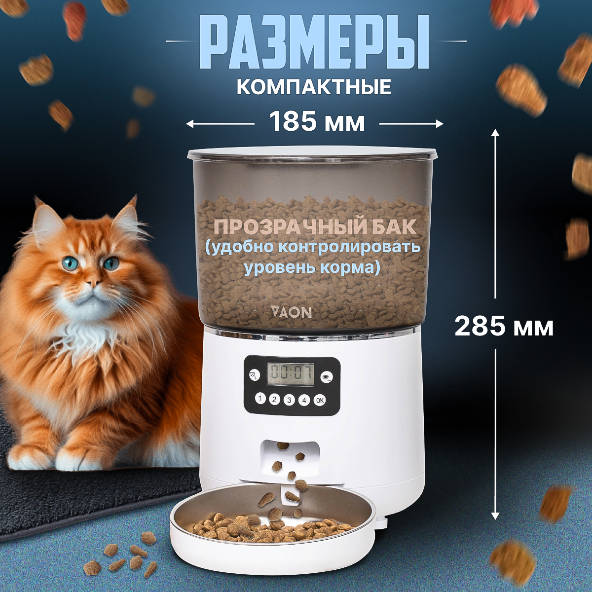 10 цен на Автоматическая кормушка для кошек и собак VAON, автокормушка с таймером для порционного кормления, белая