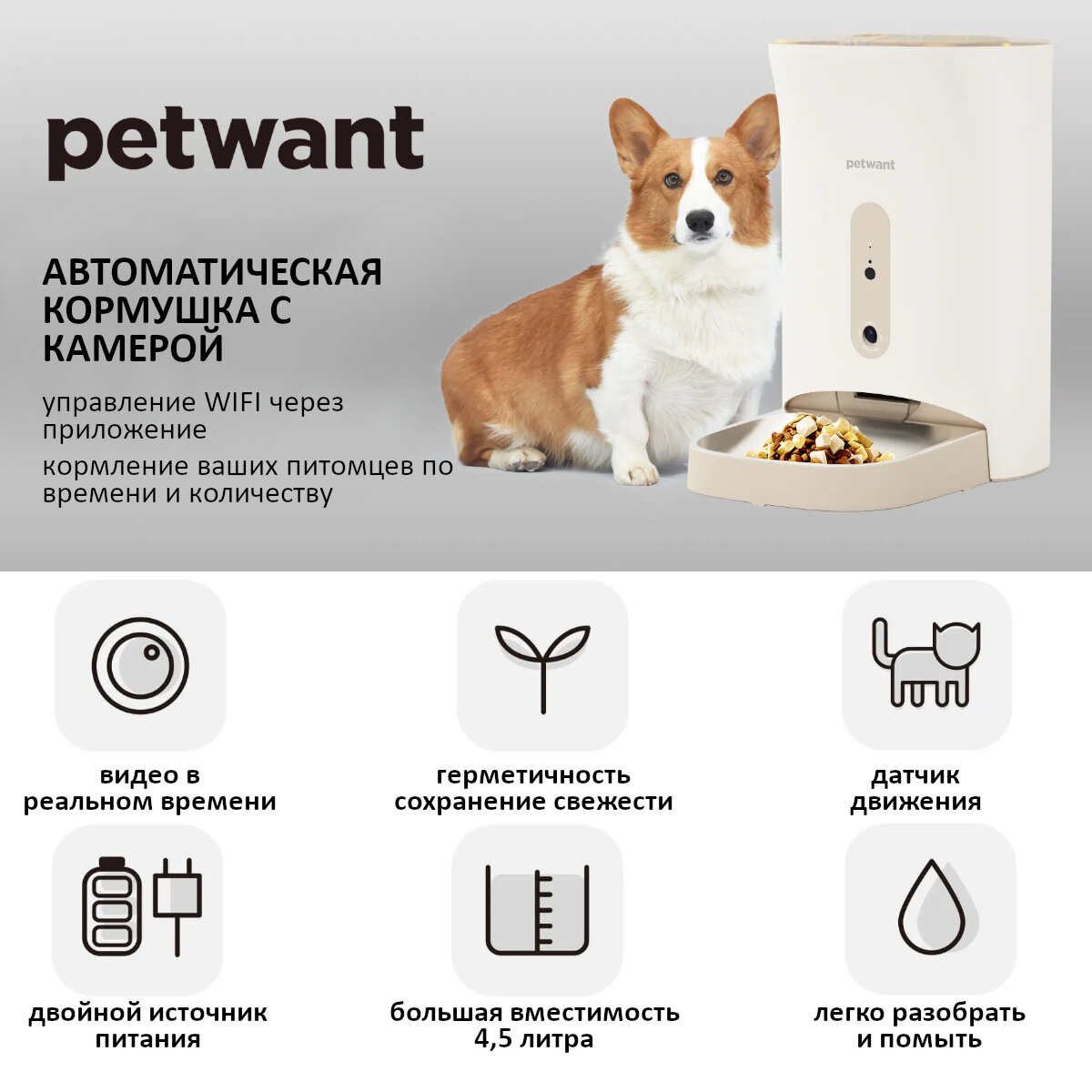 Отзывы на Автокормушка Petwant F11-C 4,5 л Wi-Fi для сухого корма с видеокамерой для кошек и собак, бежевая