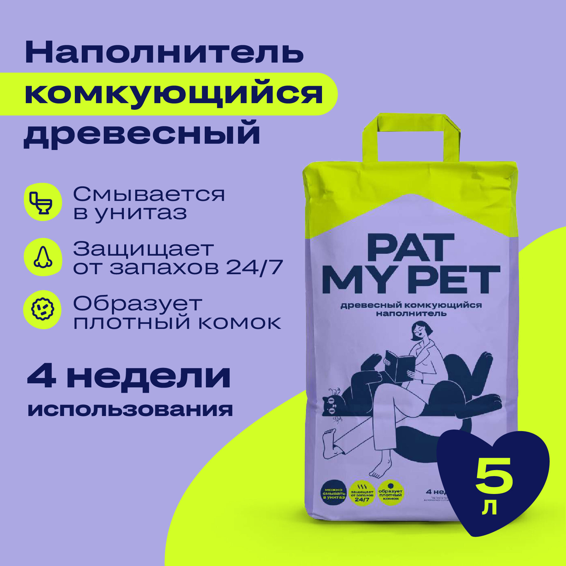 Отзывы на Комкующийся древесный наполнитель для кошачьих туалетов PAT MY PET 5л
