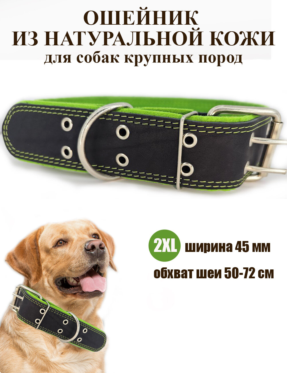 Отзывы на Ошейник для собак крупных пород Dober-Крут кожаный зеленый 2XL 50-72 см
