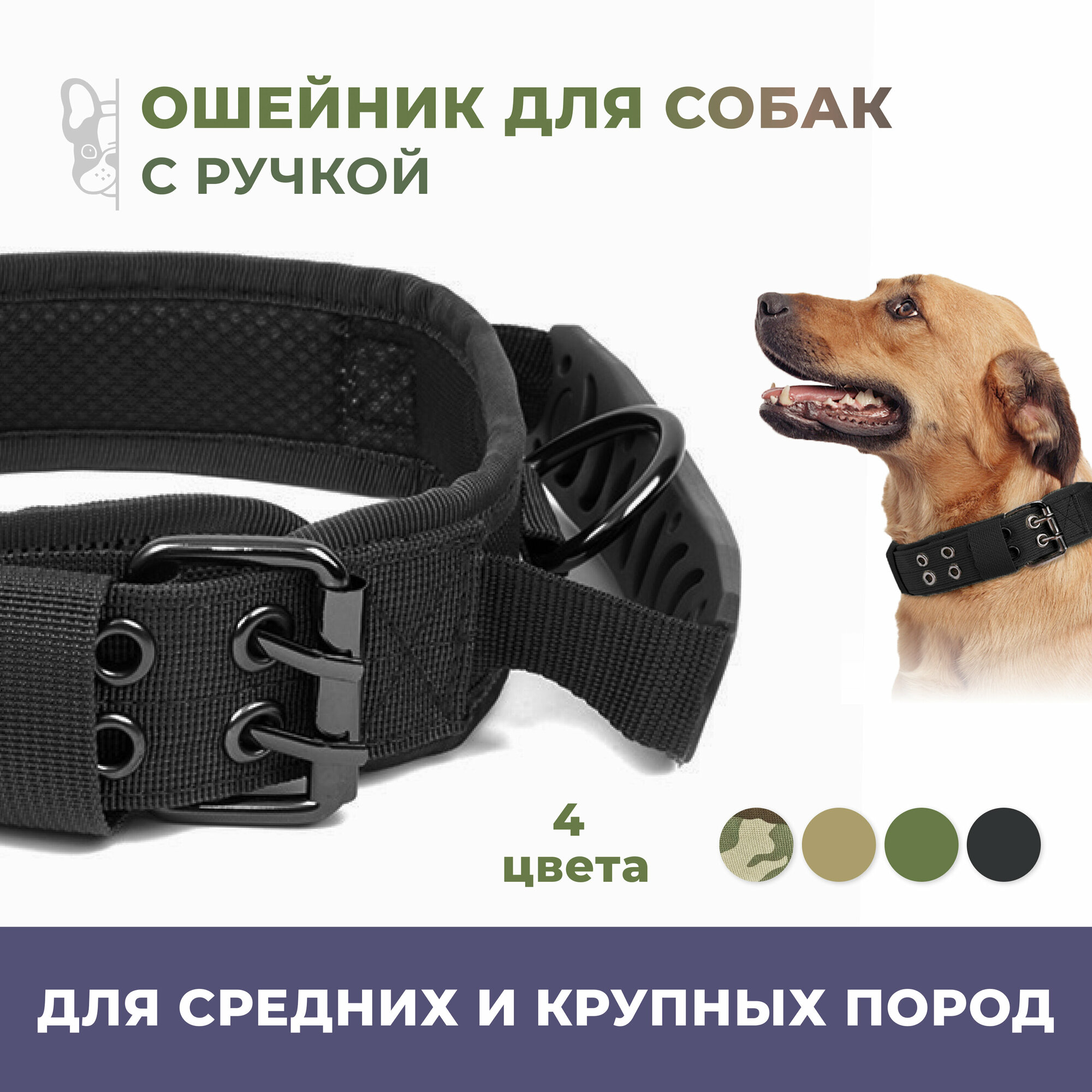 10 цен на Ошейник для собак средних и крупных пород тактический с ручкой / черный / размер L