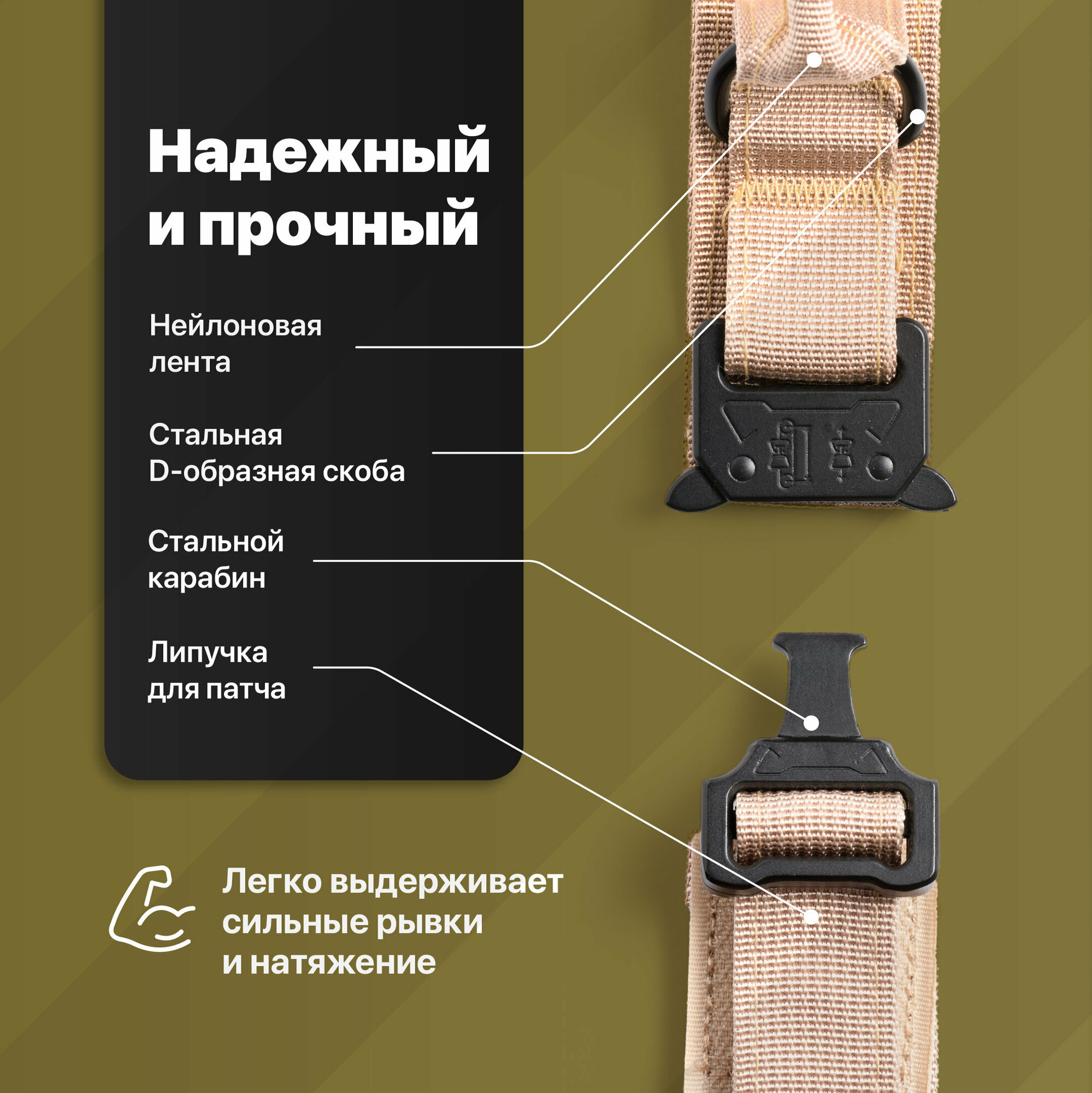 Ошейник для собак крупных и средних пород с ручкой, SSY,Тактический ошейник, Размер M, Хаки 651 ₽