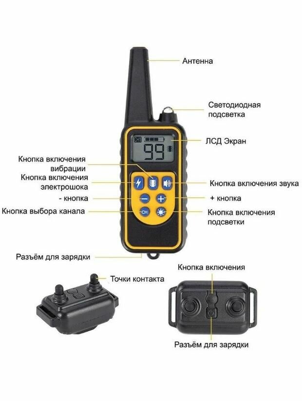 Дрессировочный электронный ошейник для собак 800м влагозащищенный информация: