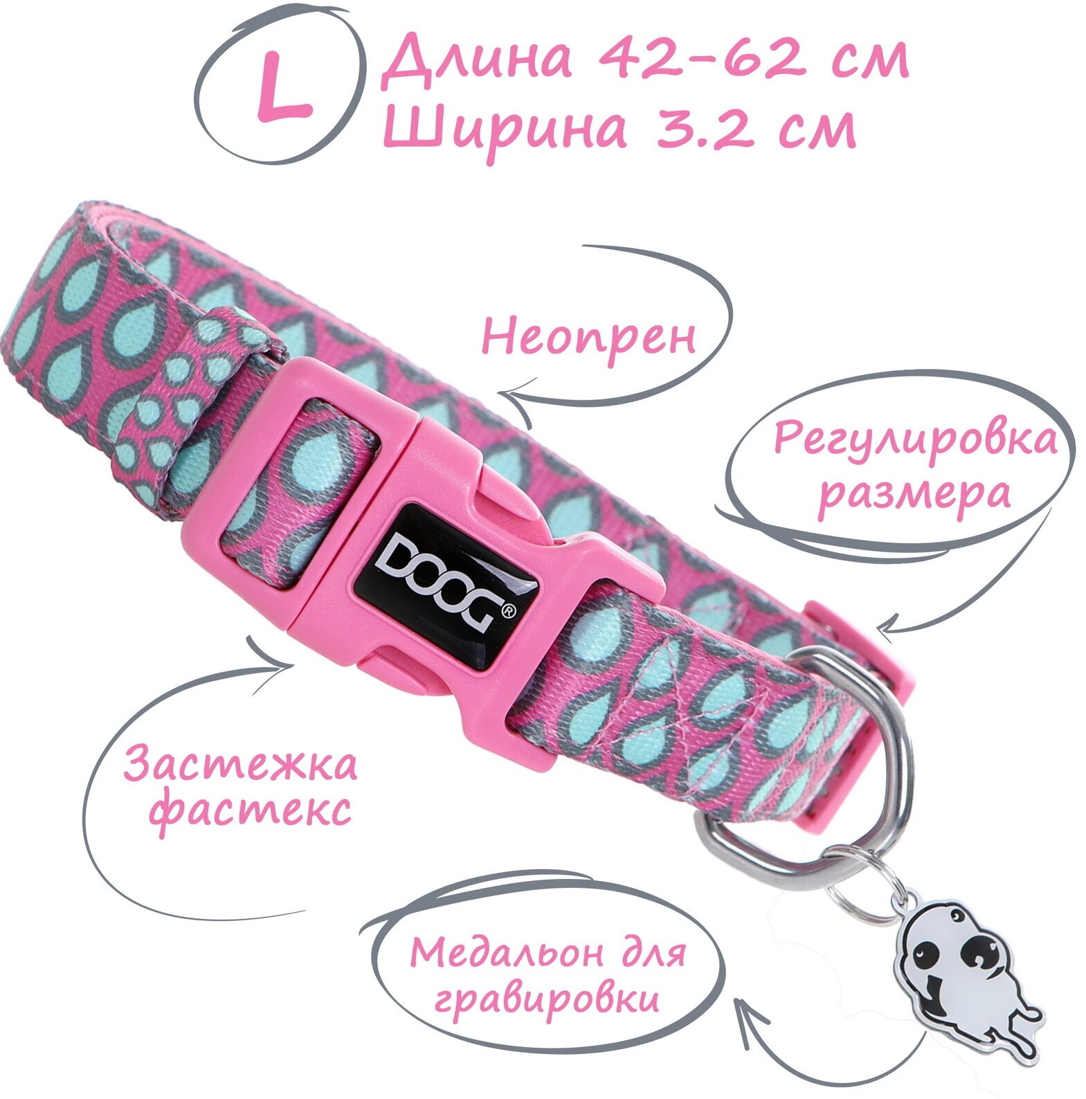 Ошейник для собак DOOG "Luna", розовый с каплями, L, 42-62см (Австралия) информация: