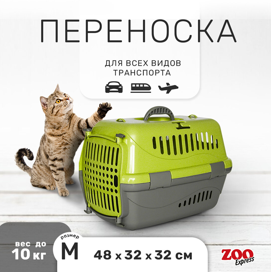 Клиппер-переноска для кошек и собак Zooexpress Турне 48х32х32 см (M), с непрозрачной пластиковой дверцей, зеленый информация: