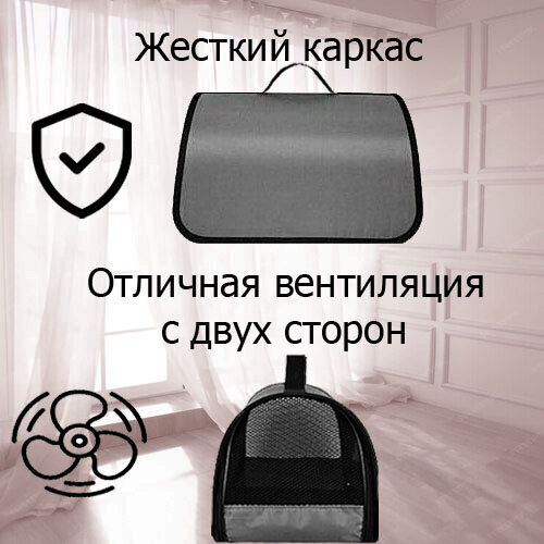 Сумка переноска для кошек, для собак мелких и средних пород, 43х25х28 см, Серый