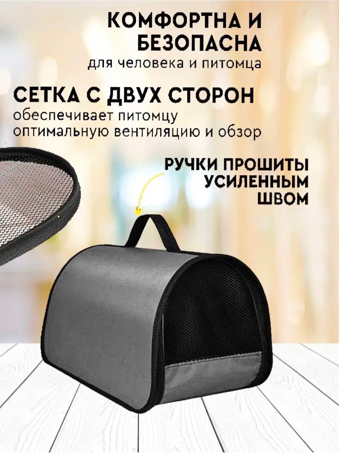 Сумка переноска для кошек, для собак мелких и средних пород, 43х25х28 см, Серый
