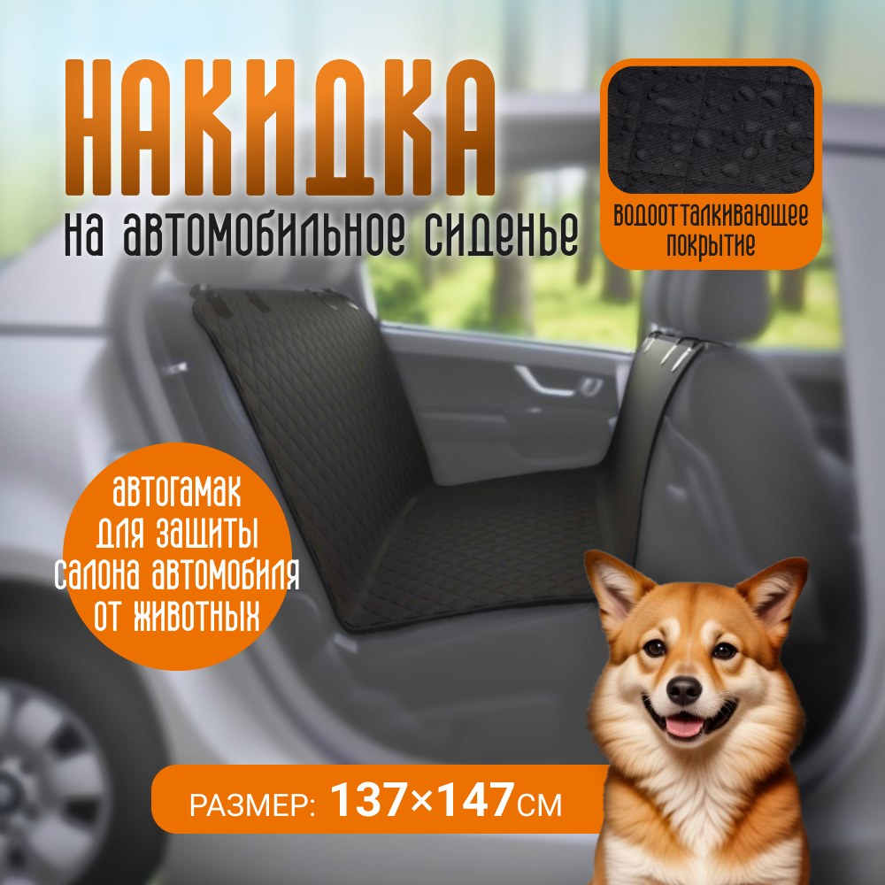 Автогамак для собак/ Автогамак для перевозки/ Накидка для перевозки собак в салоне автомобиля, 137 см x 147 см, ZOOWELL информация: