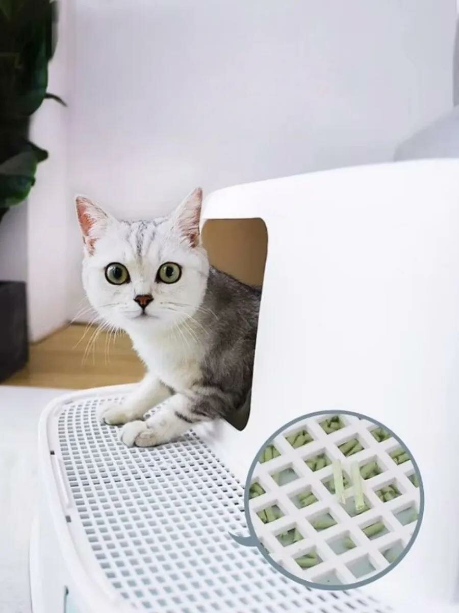 Отзывы на Закрытый туалет для кошек "Чистый котик"с коридором и фильтром,зеленый,пластик 57*52*38 см