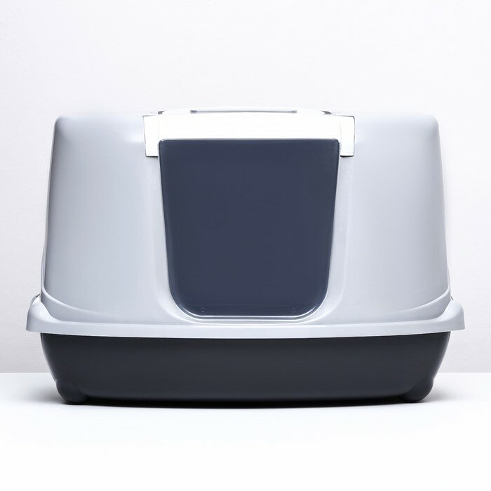 Туалет-домик для кошек закрытый с верхним входом 57*46*37 см, тёмно-серый информация: