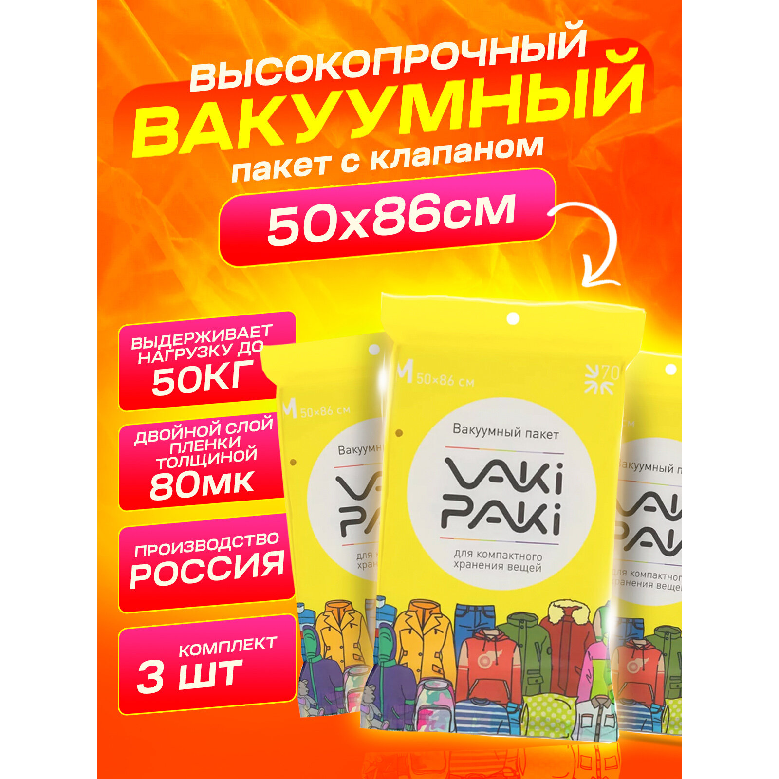 Набор вакуумных пакетов для вещей VakiPaki M 50x86, 3 шт. информация: