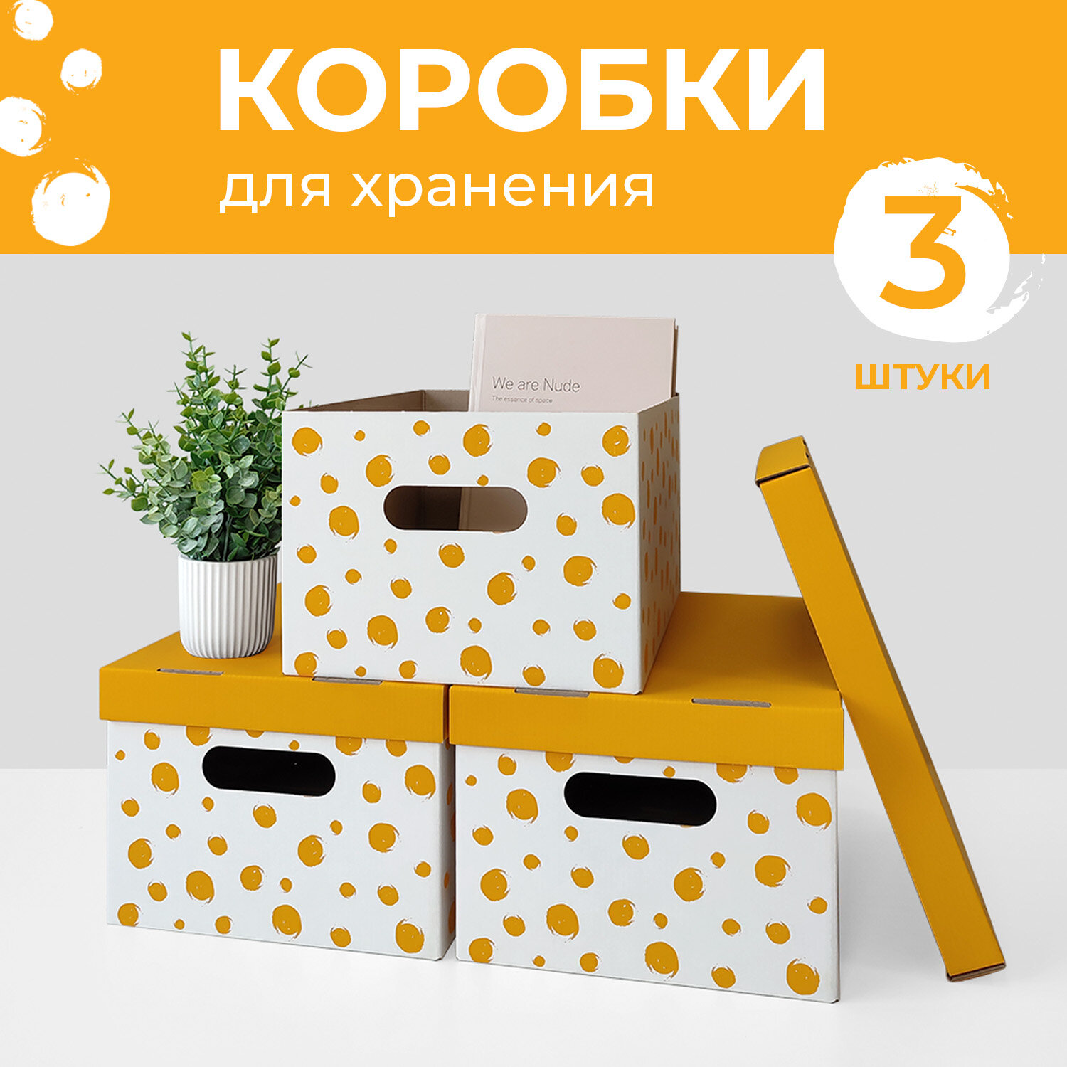 10 цен на Коробка для хранения вещей с крышкой картонная, 3 шт., Пингла желтая