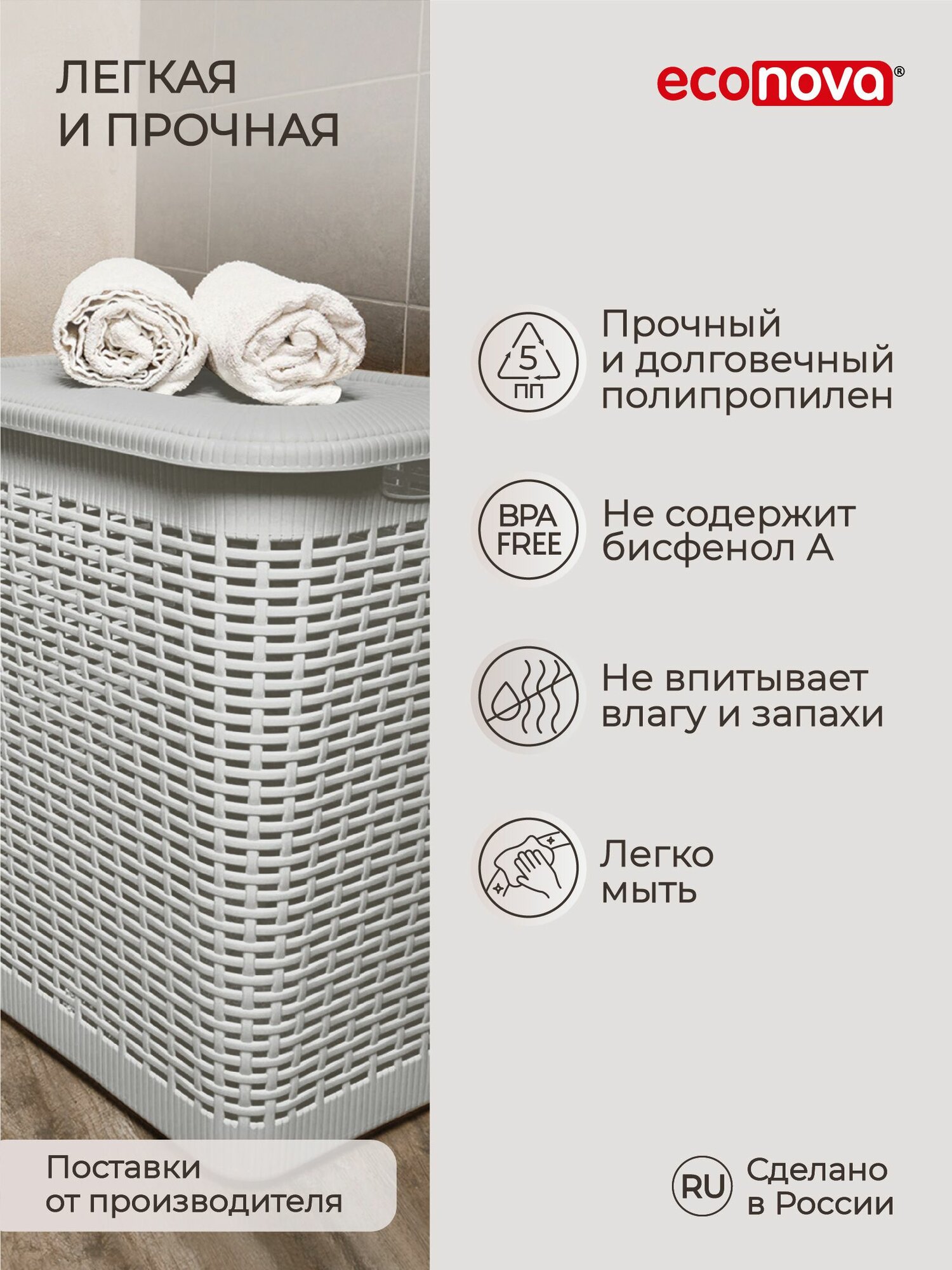 Корзина для белья Econova, 370 x 260 x 465 мм, 30 л, светло-серая
