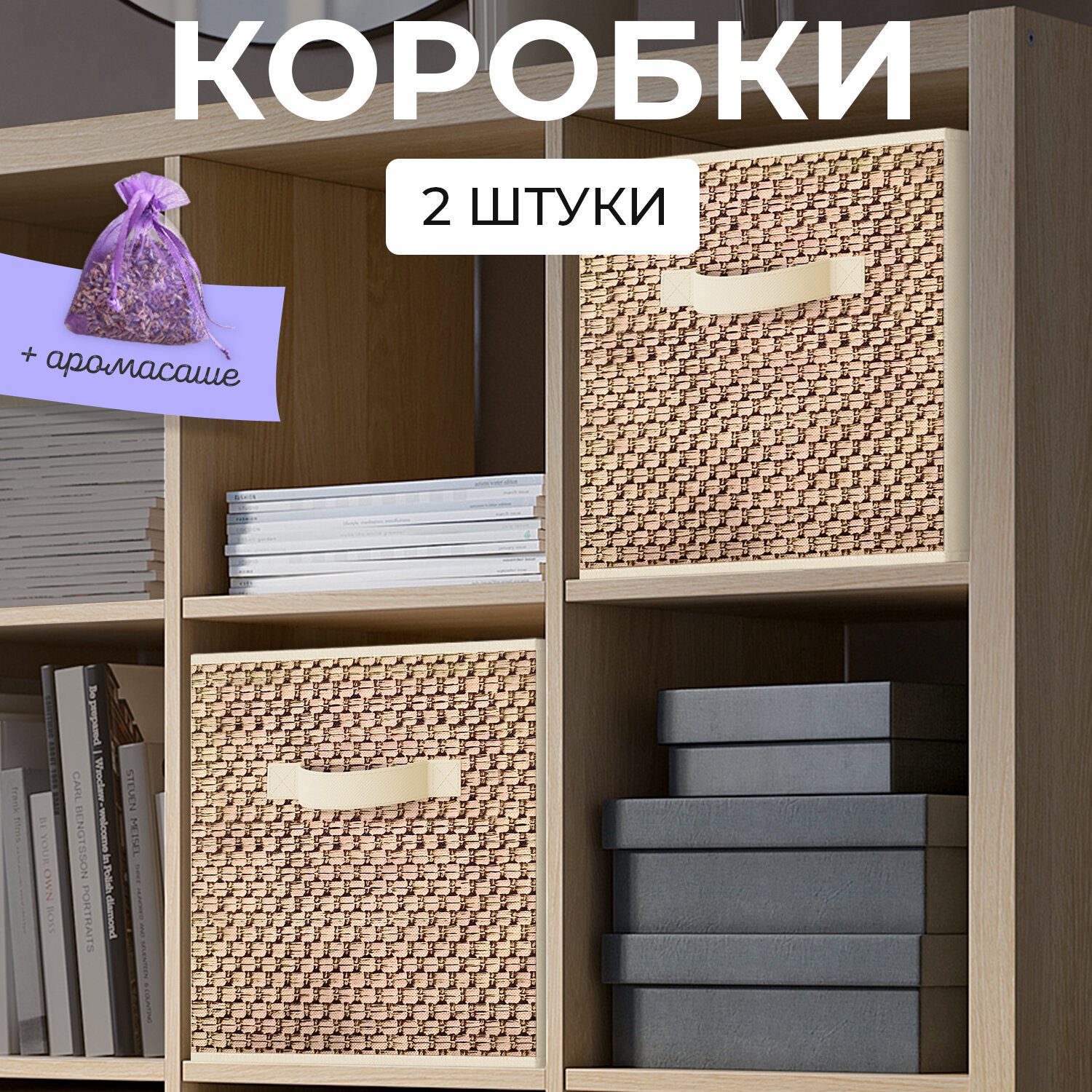 Отзывы на Коробки для хранения вещей, короб для хранения стеллажный, корзина, ящик, набор 2 шт., 27*27*28 см, светло-бежевый, BASIC