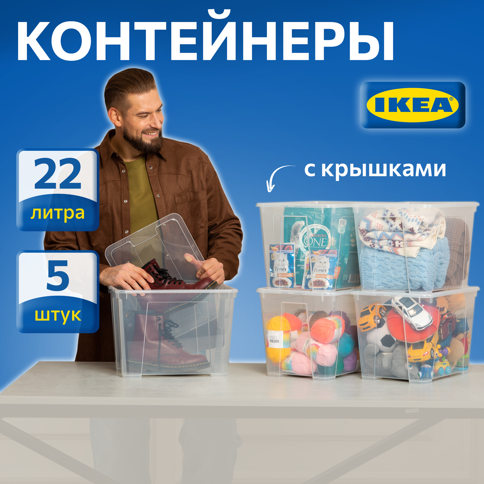 Отзывы на Контейнер для вещей с крышкой икеа самла SAMLA, 39x28x28 см/22 л, 5 шт, прозрачный