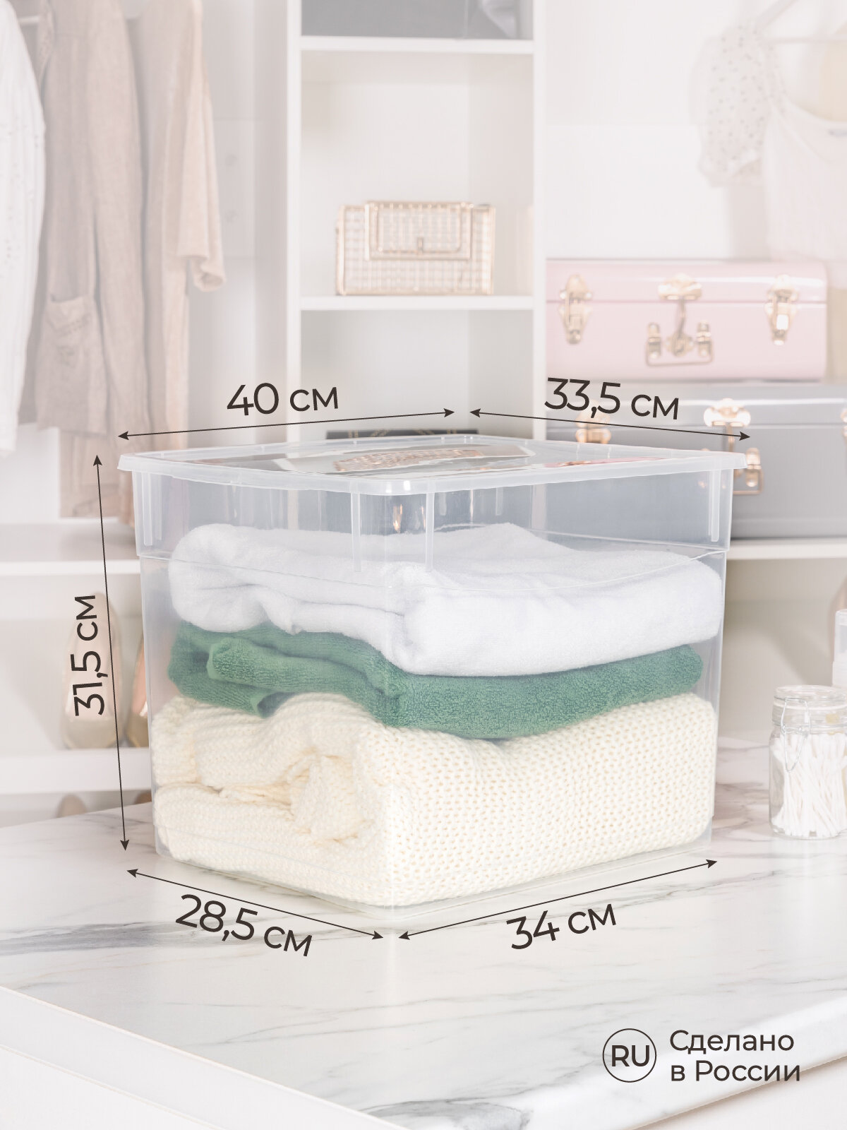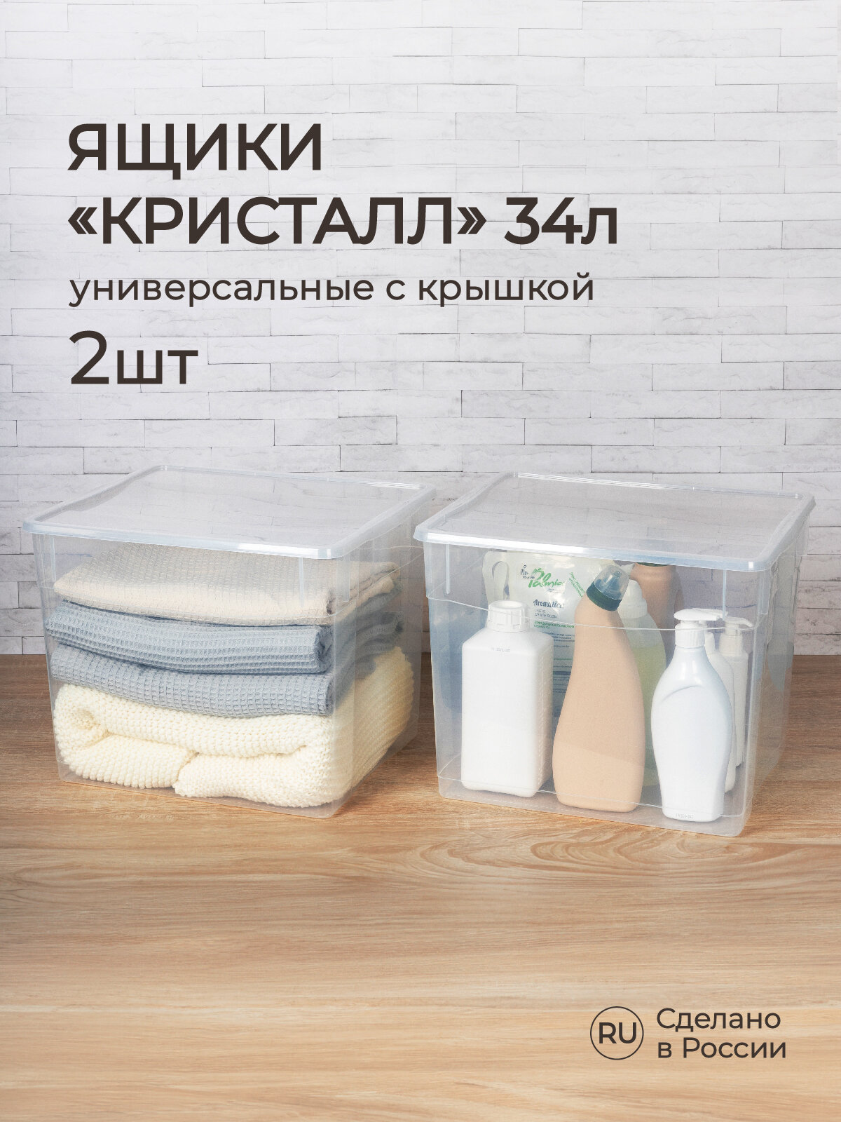 Коробки для хранения вещей пластиковые с крышкой набор 2 шт/34 л прозрачные, контейнер/органайзер для дома под белье, одежду, обувь, игрушки информация: