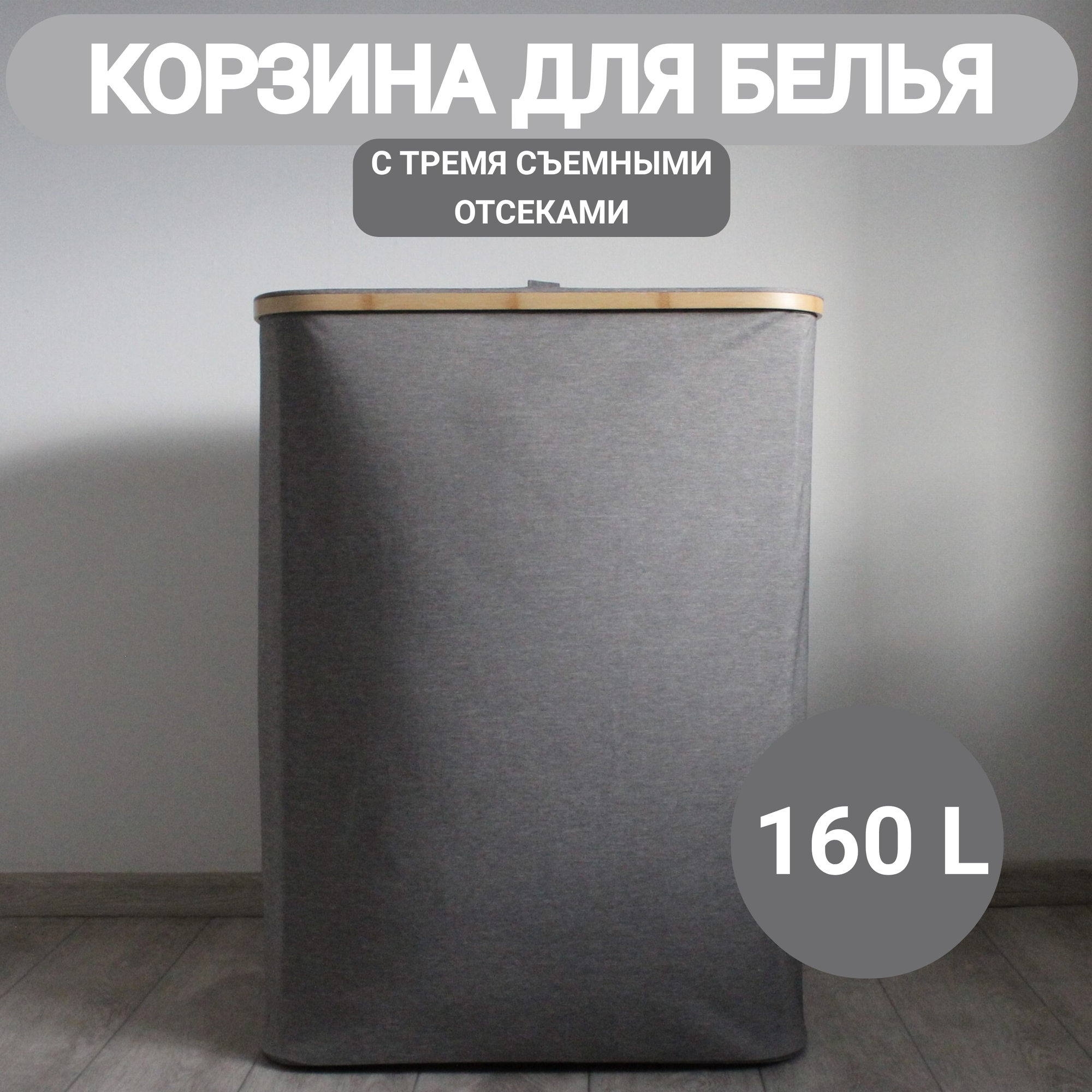 Корзина для белья из водонепроницаемой ткани и складным каркасом из бамбука