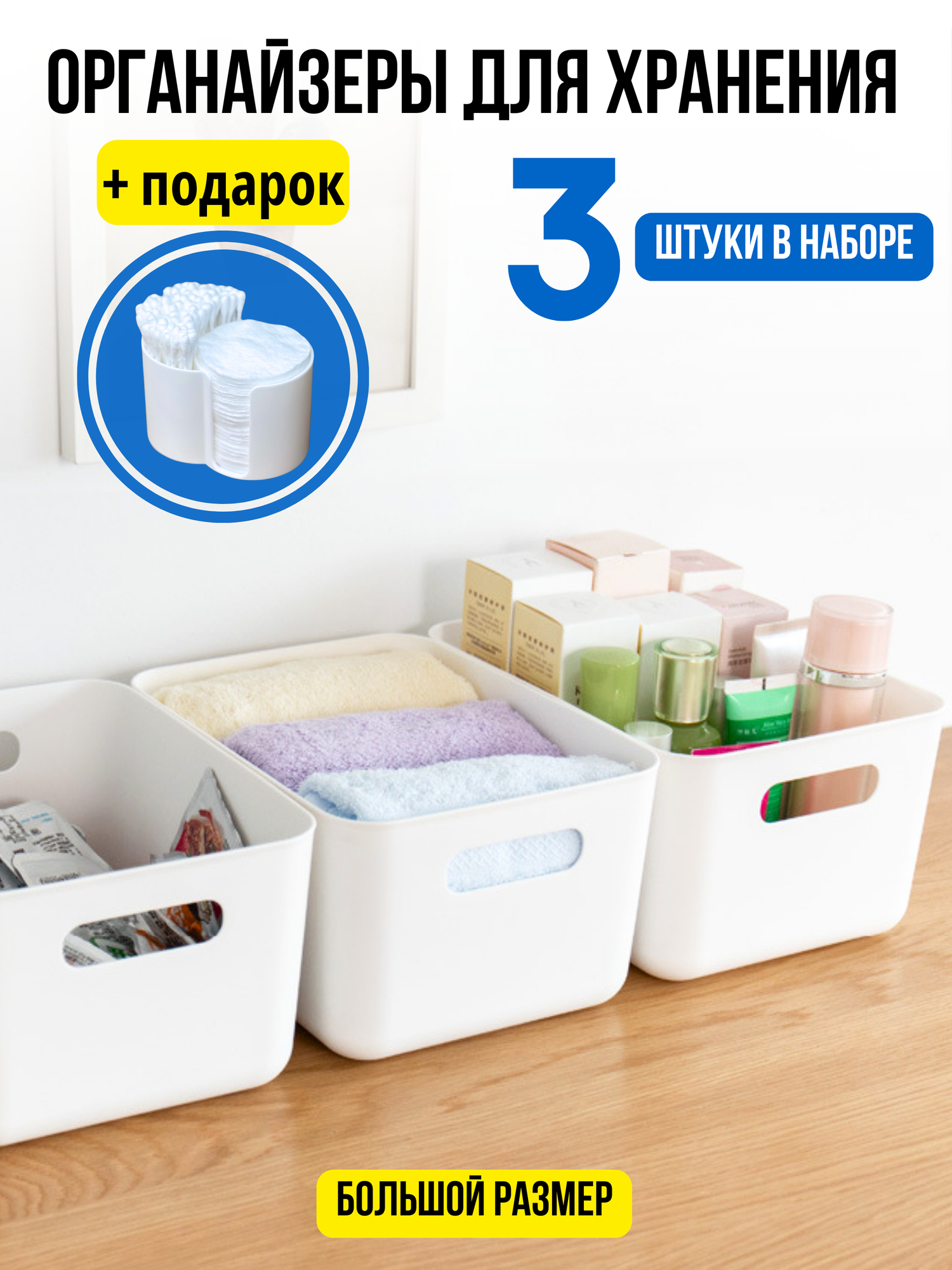 10 цен на Органайзер для хранения косметики и мелочей, набор из 3 контейнеров IKEA белые для кухни, ванной комнаты