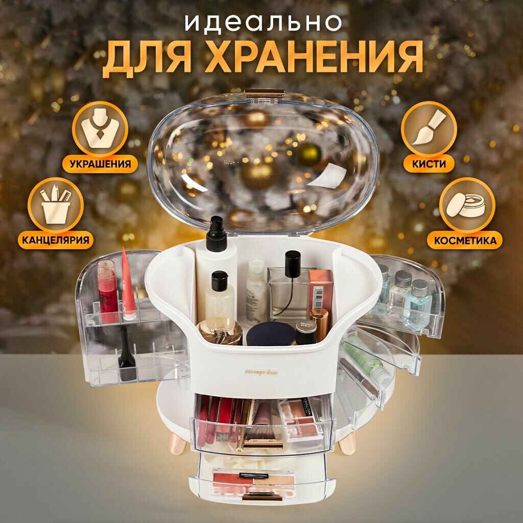 10 цен на Органайзер для косметики большой Oqqi, с выдвижными ящиками, 5 секций, 33,5х20х30 см, белый