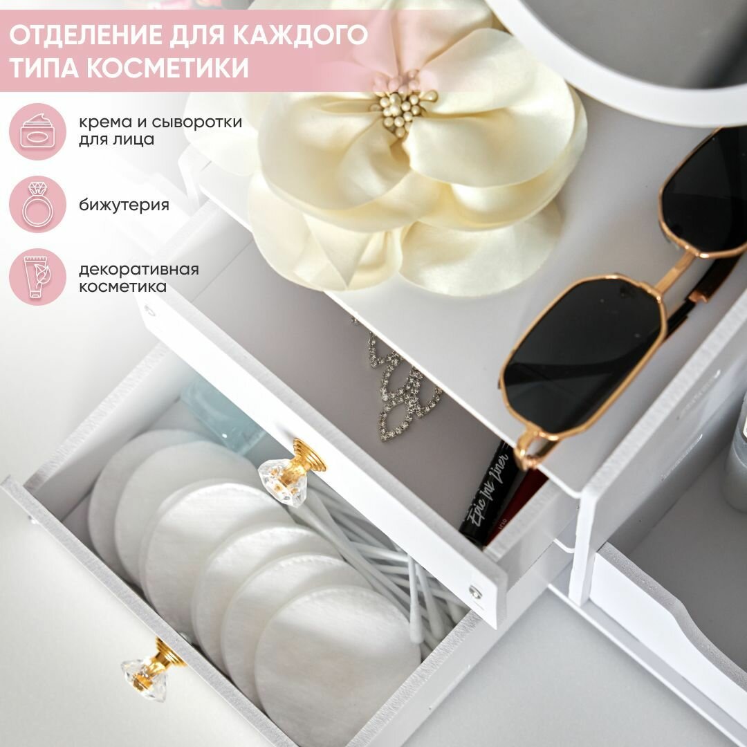 Органайзер для косметики с зеркалом Oqqi, большой, 3 секции, с выдвижными ящиками, 20,5х26х40 см, белый 1 299 ₽