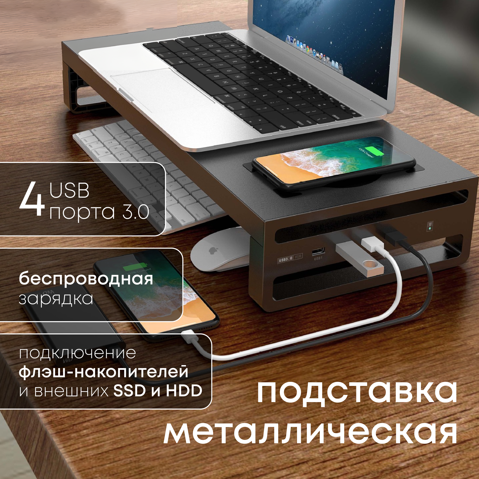Столик для монитора или ноутбука c беспроводной зарядкой + 4 x USB 3.0 информация: