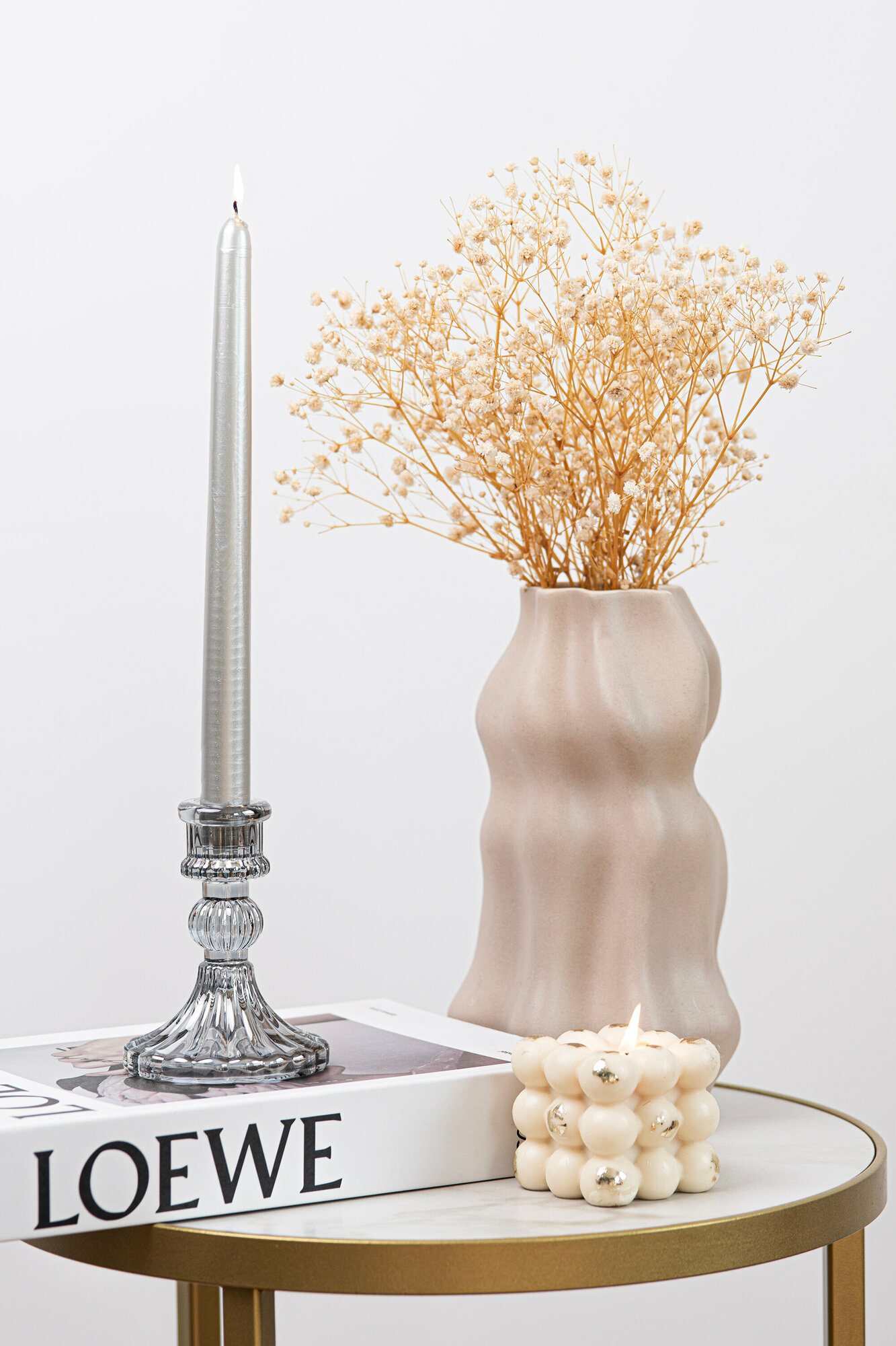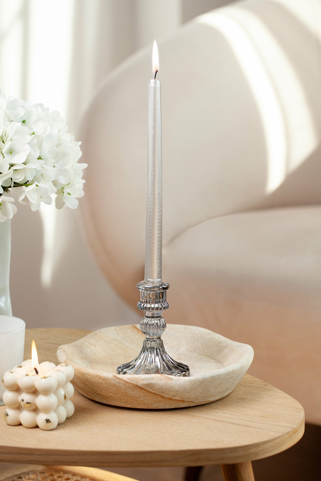 Подсвечник для свечей стеклянный, серебристый, Gestia Home информация: