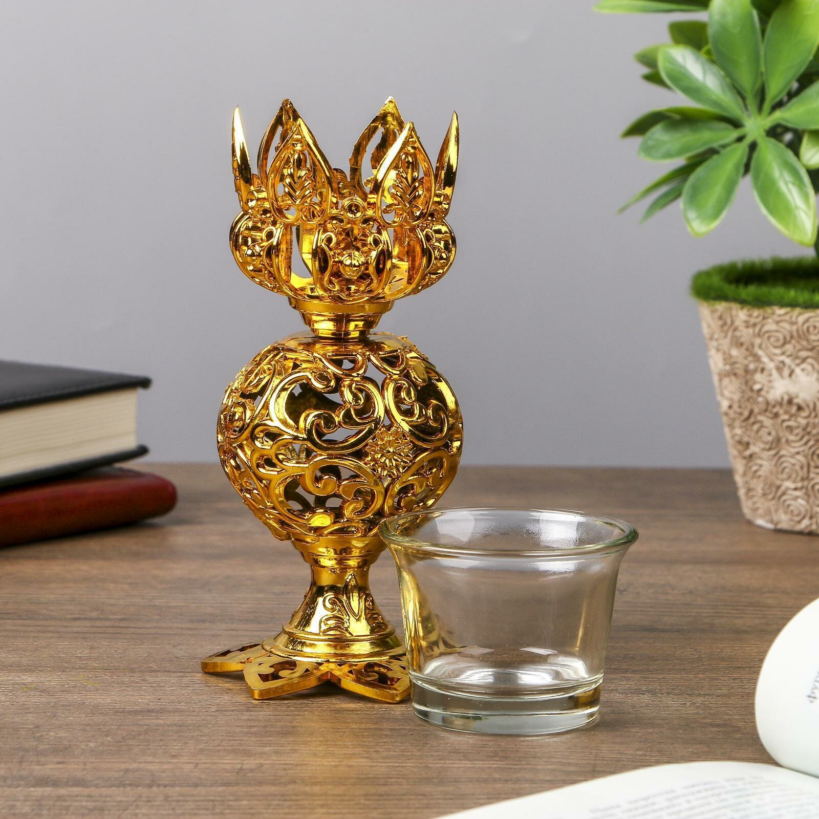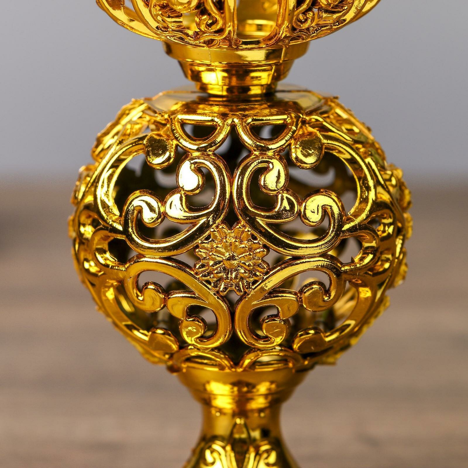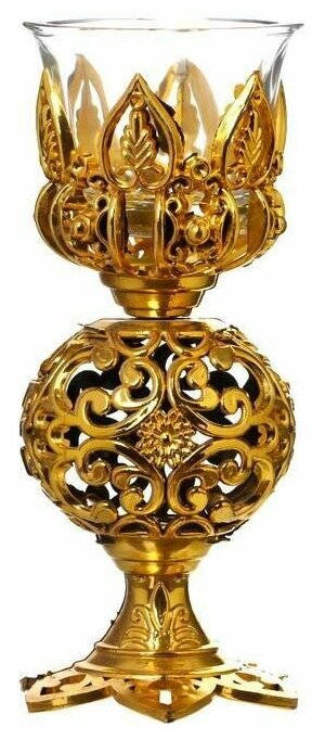 Отзывы на Подсвечник пластик, стекло на 1 свечу "Ажурный шар" бокал на ножке золото 15х6х6 см