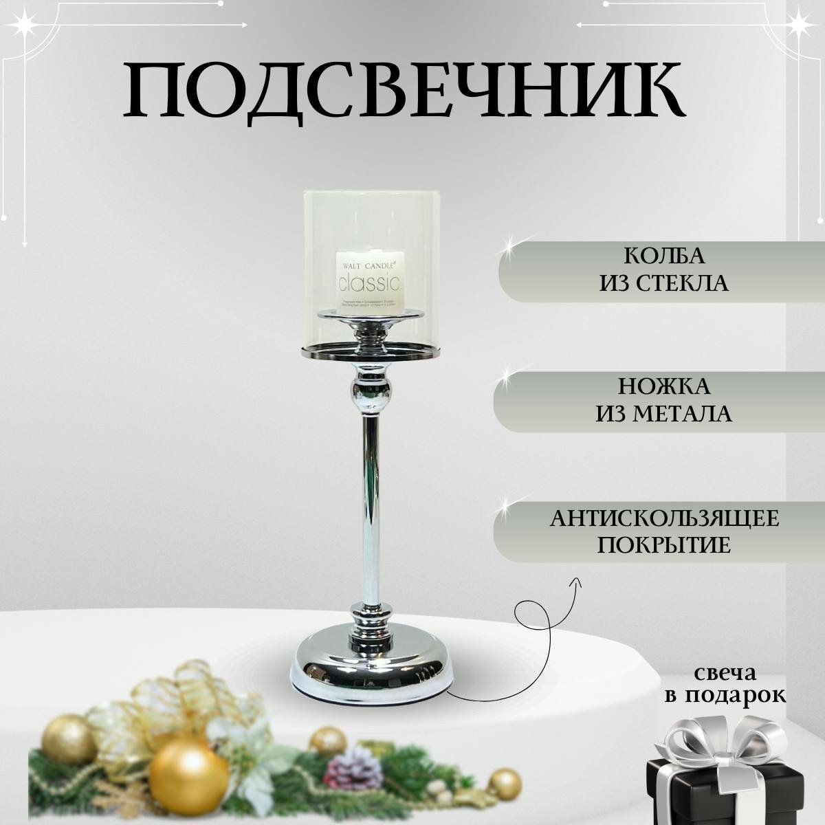 Подсвечник серебряный высокий со свечой информация: