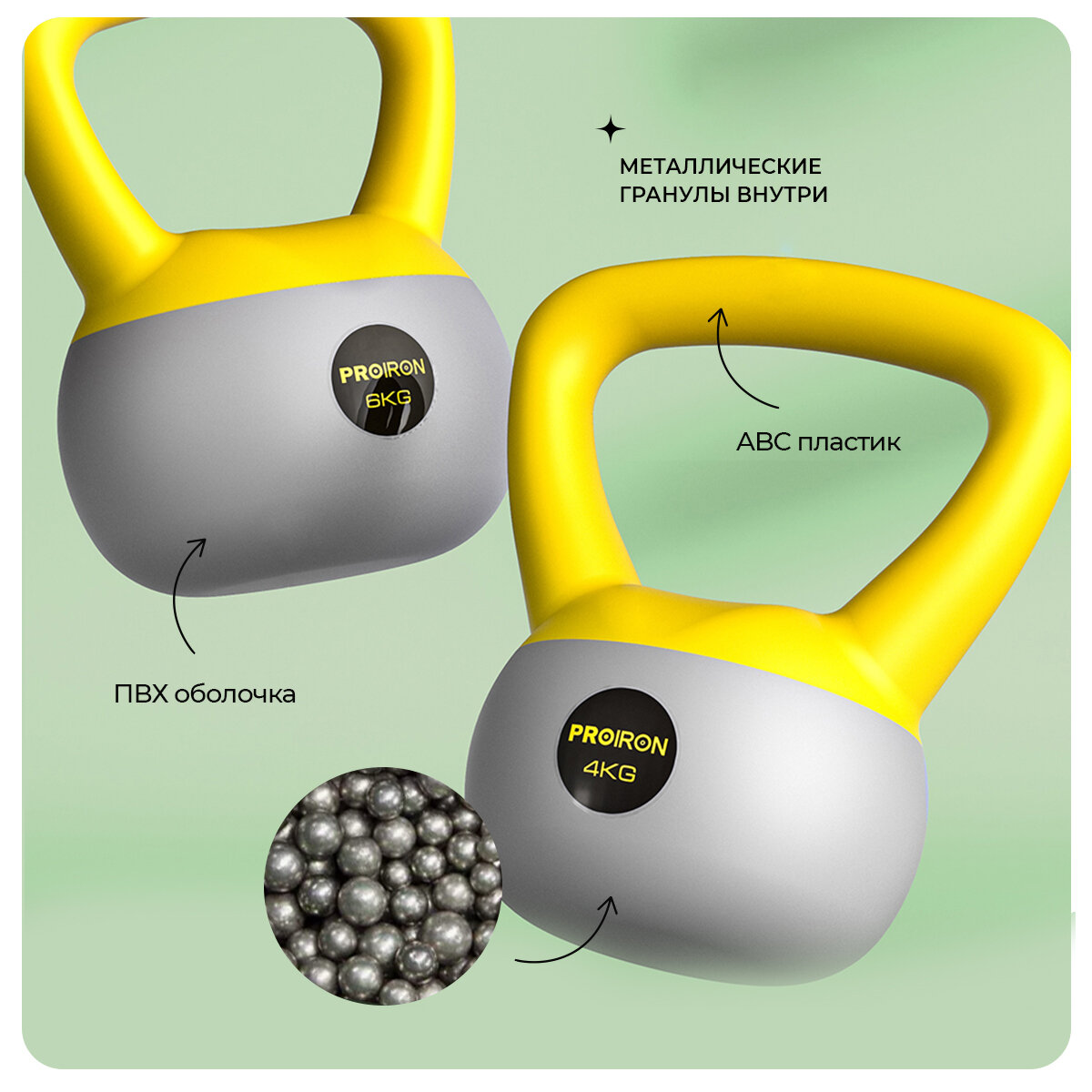 Гиря 4кг, для фитнеса, PROIRON, мягкая информация: