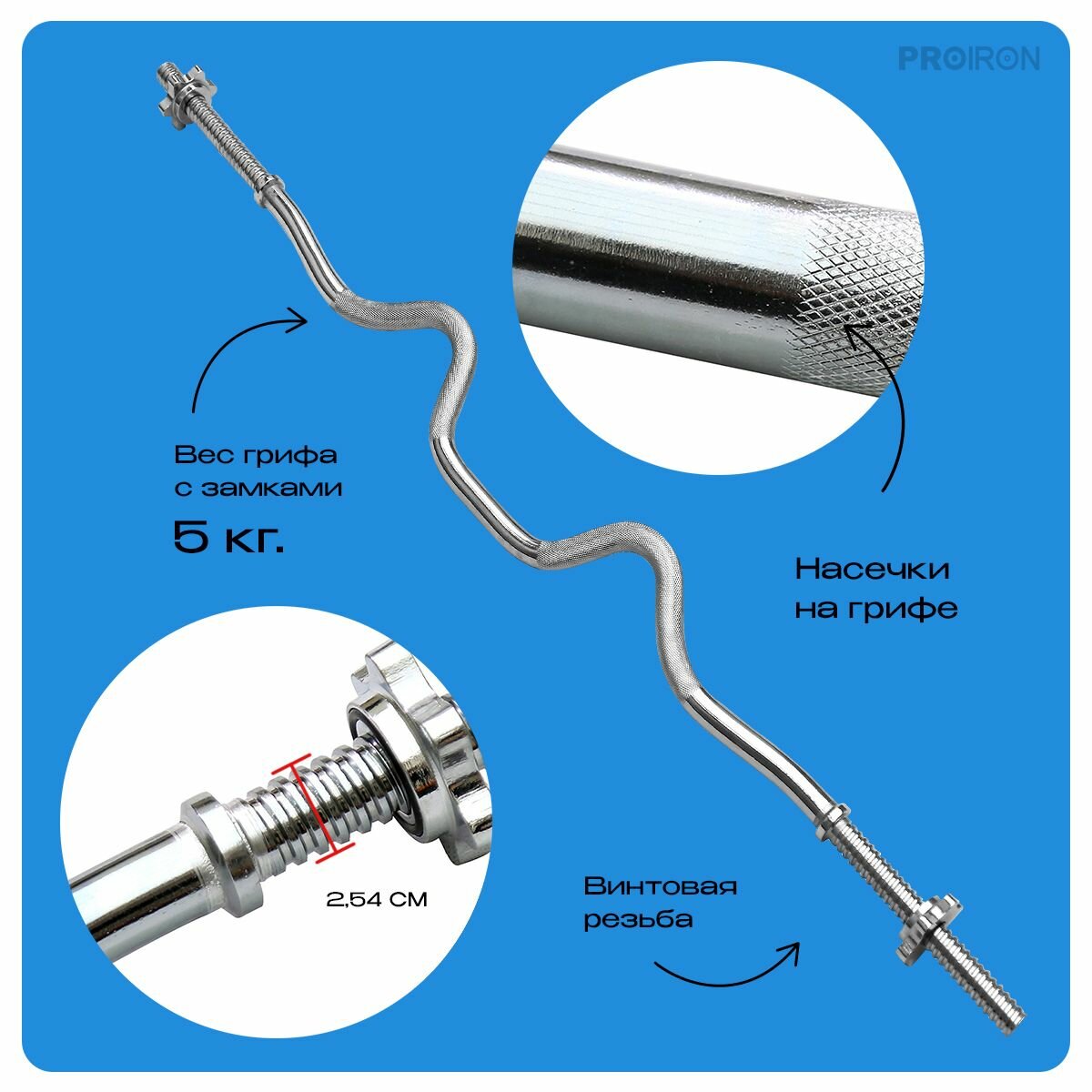 10 цен на Гриф для штанги, PROIRON, W-образный, 120см, D25 мм