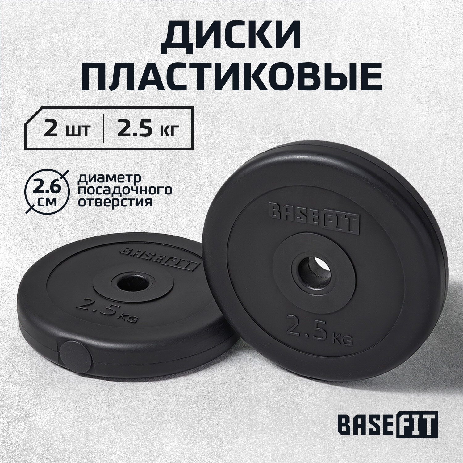 Диск пластиковый BASEFIT BB-203 2,5 кг, d=26 мм, черный, 2 шт информация: