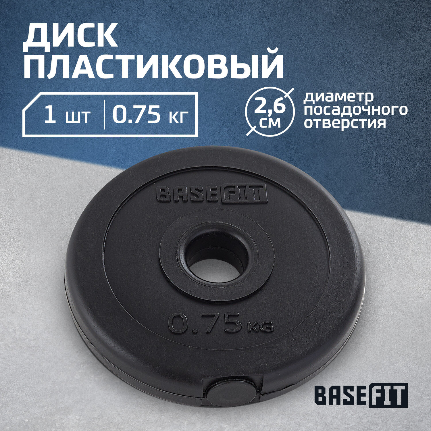 Диск пластиковый BASEFIT BB-203 0,75 кг, d=26 мм, черный